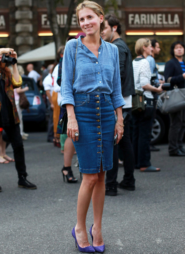 - Although the denim pencil skirt belongs to the casual style, depending on the top and accessories, such clothing is appropriate both at the office and on a date.