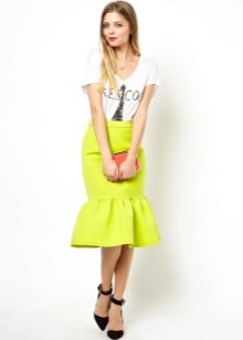 Modern skirts of this style are not only strict, but also decorated with drapery, flounce, embroidery, folds and other additional elements. In addition, a cut on such a skirt may be present from the sides and front.