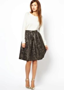 The skirt of this style looks elegant and light. It does not interfere with movements and opens slender legs, because the most often is represented by the length of a mini, although there are skirts-packs of medium length, below the knees, and even floor-length.