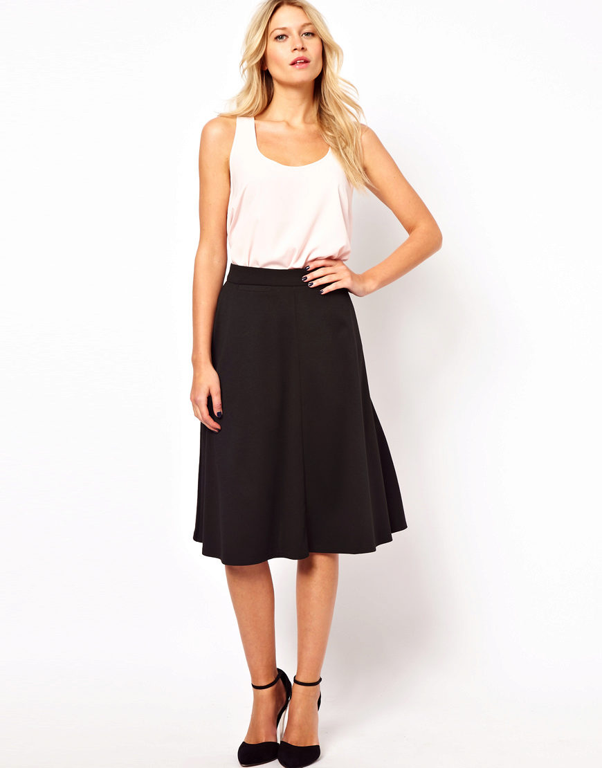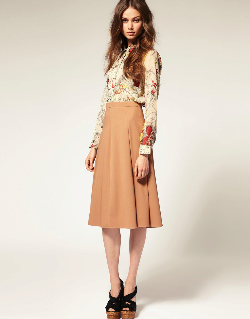 Flared skirts appeared in women's wardrobes in the 19th century in the 20s and initially had only a great length. Unlike the sun skirt, flared models are narrow at the top and widened from the middle part of the hips. Modern flared skirts are short, medium length and the floor, and the number of wedges in different models is different.