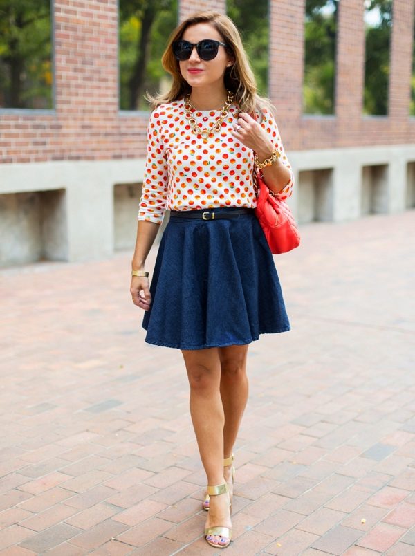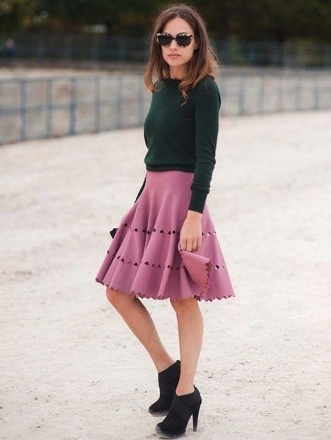 Girls with pear type should be very careful when choosing a skirt style. It is necessary to choose a model that allows to veil a big bottom and emphasize the waistline.