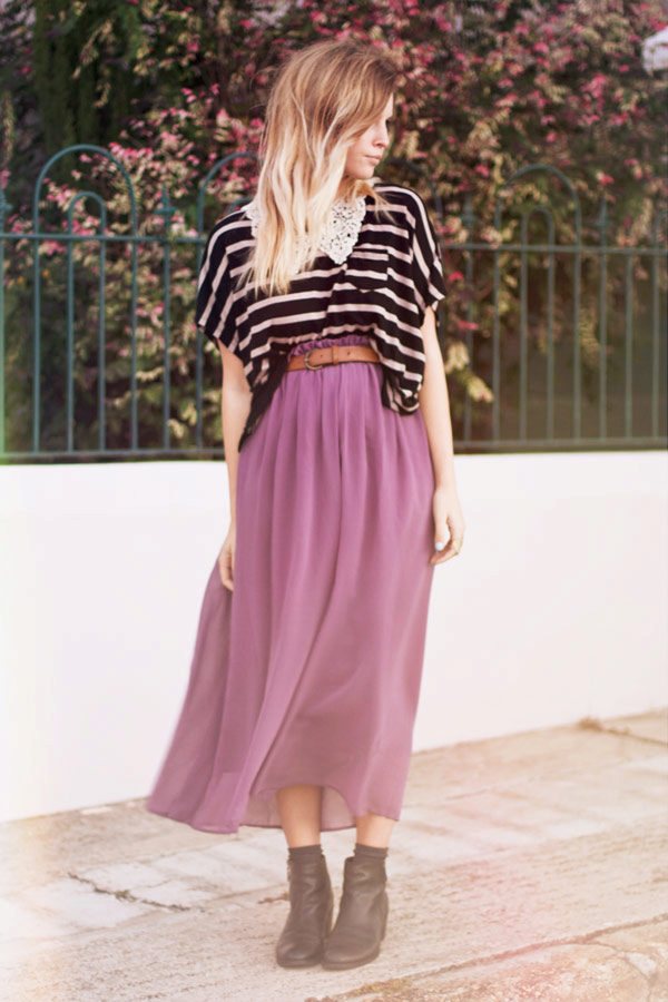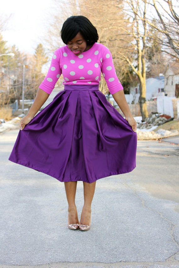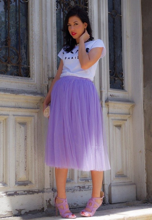 From the great variety of purple shades, each is able to choose its ideal color for the skirt. The model is not for every day, but, nevertheless, you will wear it regularly, and it will take a worthy place in your wardrobe.
