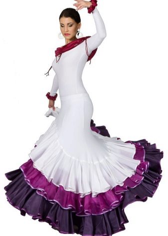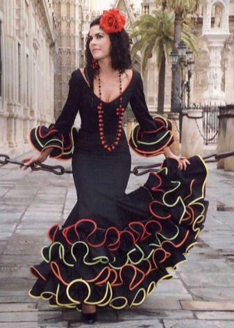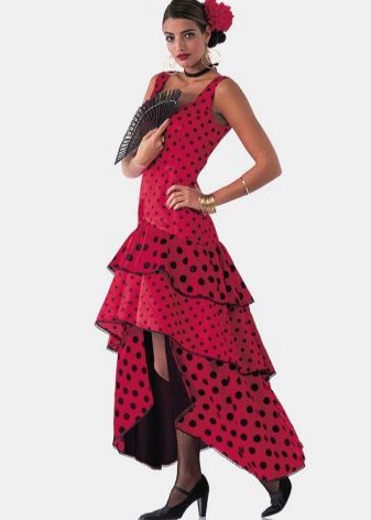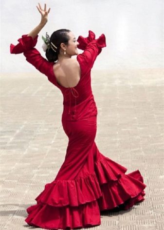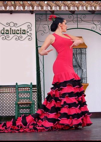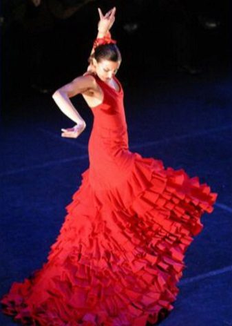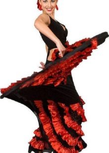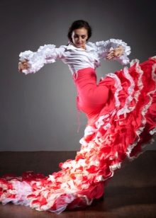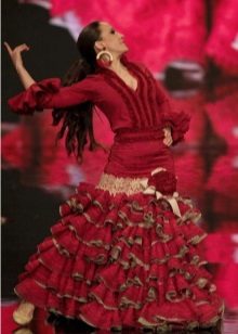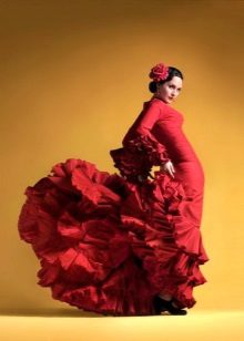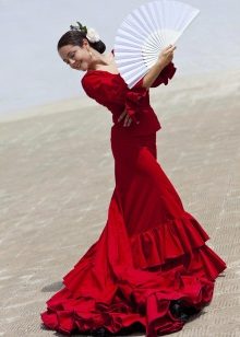 Another option for Spanish dance dress is bata. This is a skirt with a long train, or, as it is sometimes called, a tail. In this case, more often single-color fabrics of deep colors are chosen for tailoring.