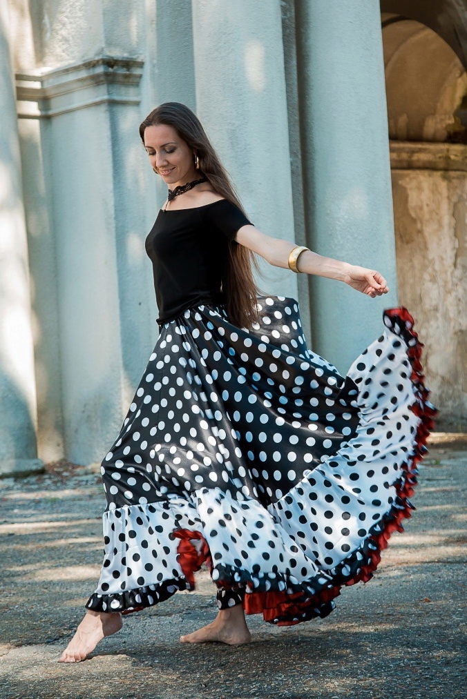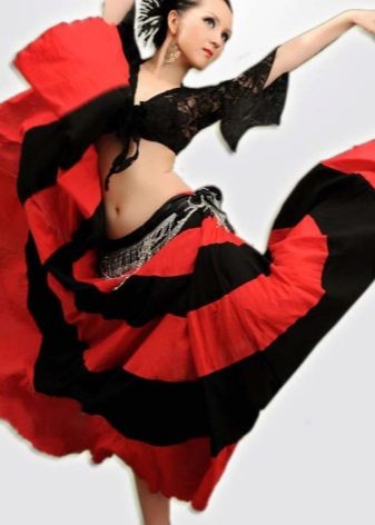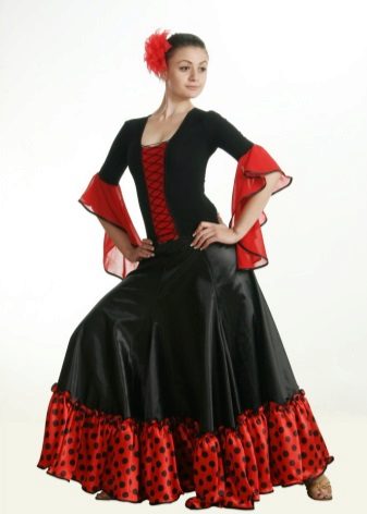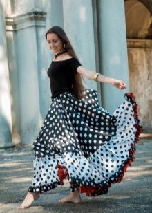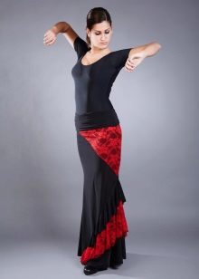 In the matter of choosing a suit for flamenco, the skirt greatly benefits the dress for one simple reason - it is more practical.Changing only the top, the dancer will have a lot of options for the stage image. It is easier and more profitable than sew a few dresses.