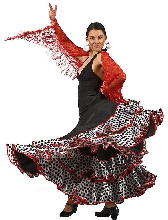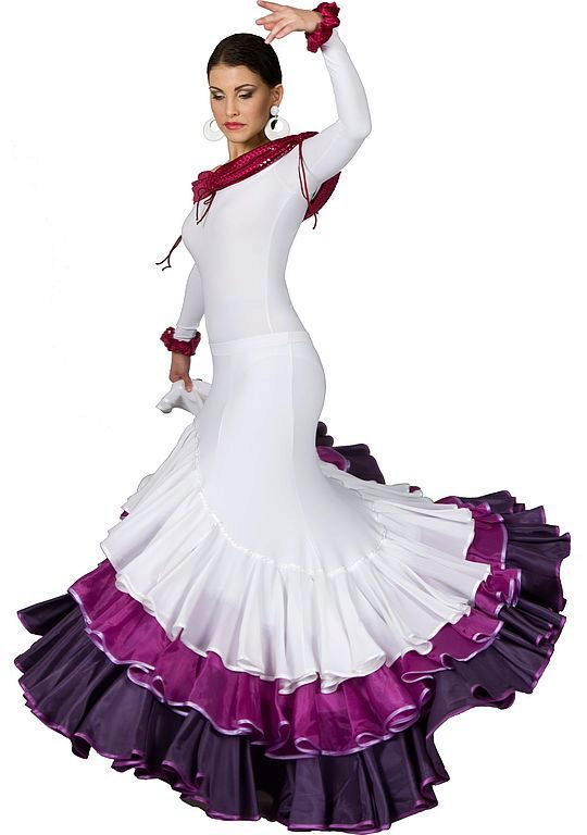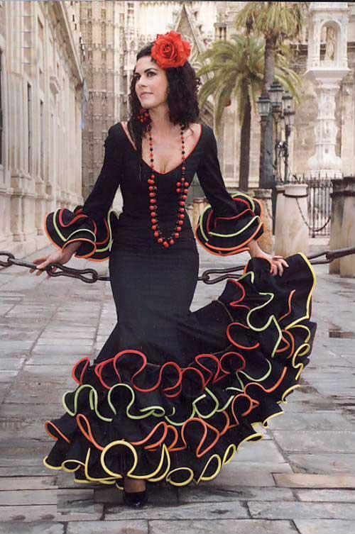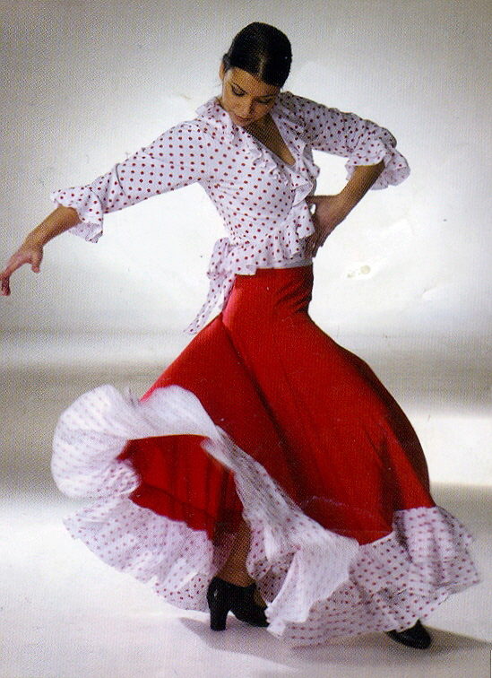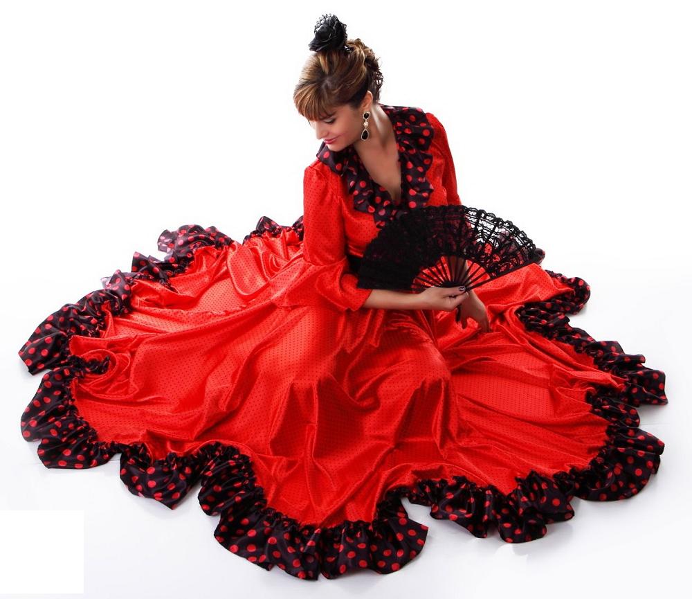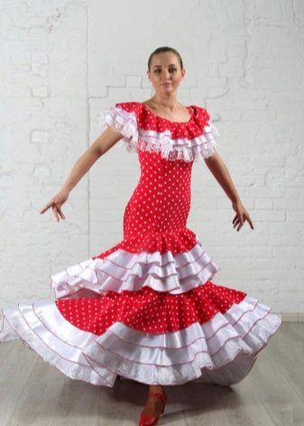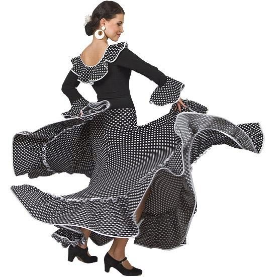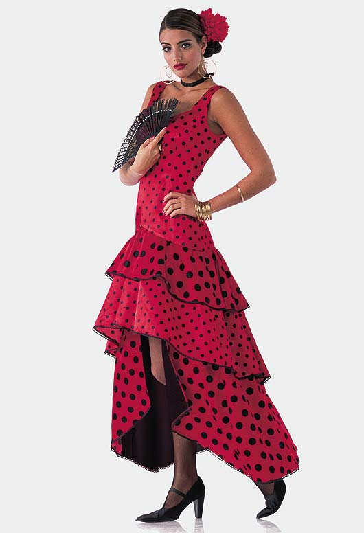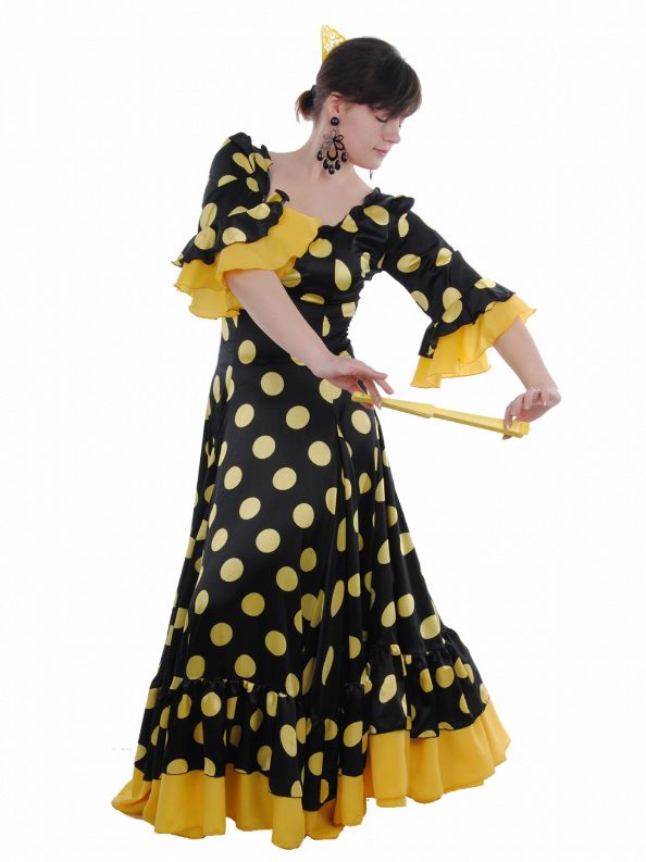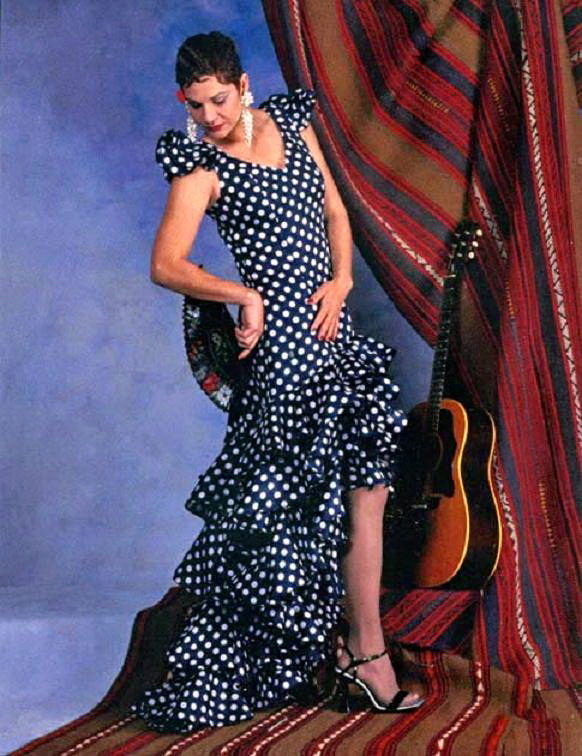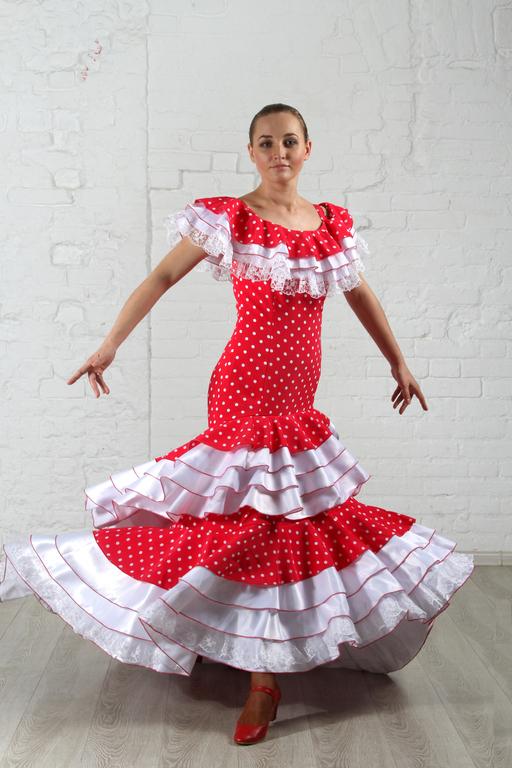 It is this version of the costume for flamenco that can be found in a variety of color variations, often they are sewn from fabric into large peas.