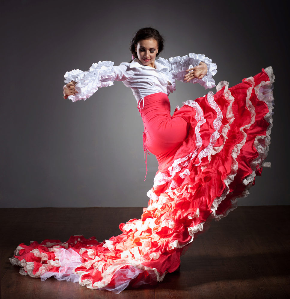 When someone talks about flamenco, an image of a beautiful young woman dressed in a long skirt of bright red color immediately appears in front of her eyes. A carnation gracefully perched on her hair, a necklace of large stone on her neck, and an earring ring in her ears.