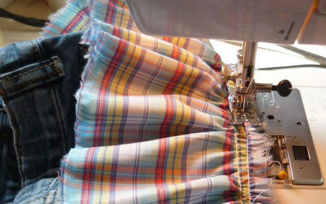 Try it on yourself. Determine the exact place at the waist or hips where this part of the skirt will hold. Measure the distance from the edge of the workpiece to the belt - get the width of the coquette. Add another 2 cm for stitches.