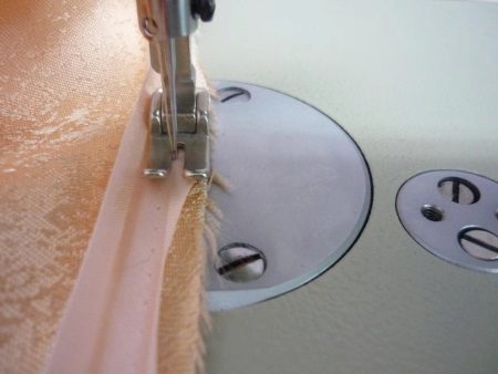 Cut out the yoke from the scraps of the main fabric. To do this, draw 4 rectangles (width of the yoke - see above, the length of each element - the circumference of the hips divided by 4 and add 3 cm). Sew two pieces together - this is in front of the yoke. Connect the remaining two elements, and fasten a zipper between them, this is the backside with a clasp. Do not make side seams yet.