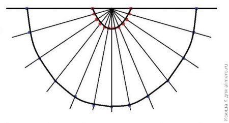 On the resulting billet, mark the inner circle, the diameter of which should be equal to the girth of your hips, divided by 6.3. You need to draw the inner circle according to the technology described above.