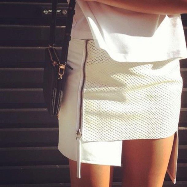 If you want to look great, then you should get a leather pencil skirt in white. The strict narrow style perfectly combines with the texture of the material, so you can be confident in the embodiment of a refined silhouette. With a leather skirt, a bask top looks stylish. If you need to create an evening look, then you only need to add expensive jewelry, and you will always be the center of attention at any party. When choosing shoes worth staying on the boats on the heels.