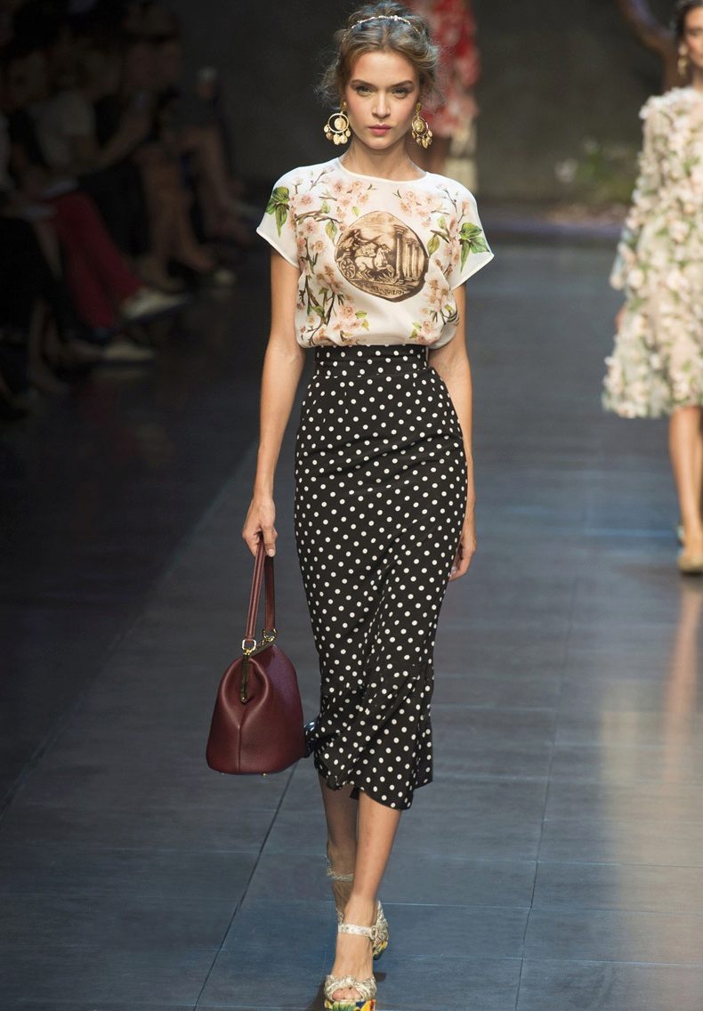 For the silhouette in the shape of a pear and the letter “X” (or an hourglass), the overestimated waist of the pencil skirt serves as a peculiar corset and perfectly conceals flaws and extra pounds that have accumulated around the waist.