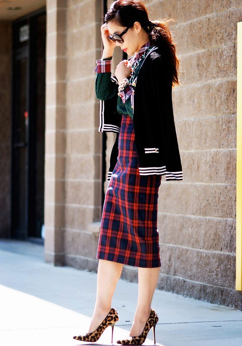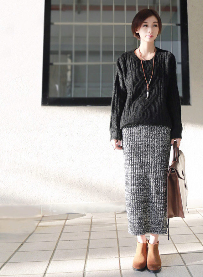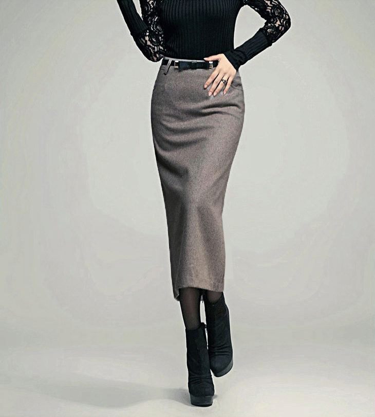 A medium-length pencil skirt requires slender legs from its owner. Therefore, if your calves do not have sufficient beauty, the long model is quite acceptable.