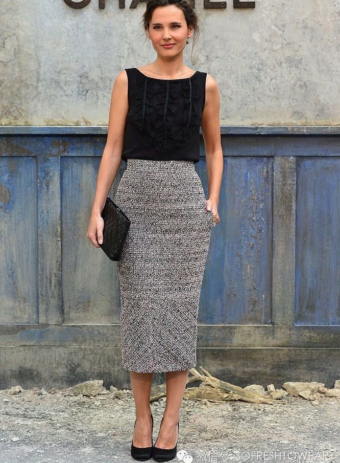 Paradoxically, a long pencil skirt can make a short woman even lower.