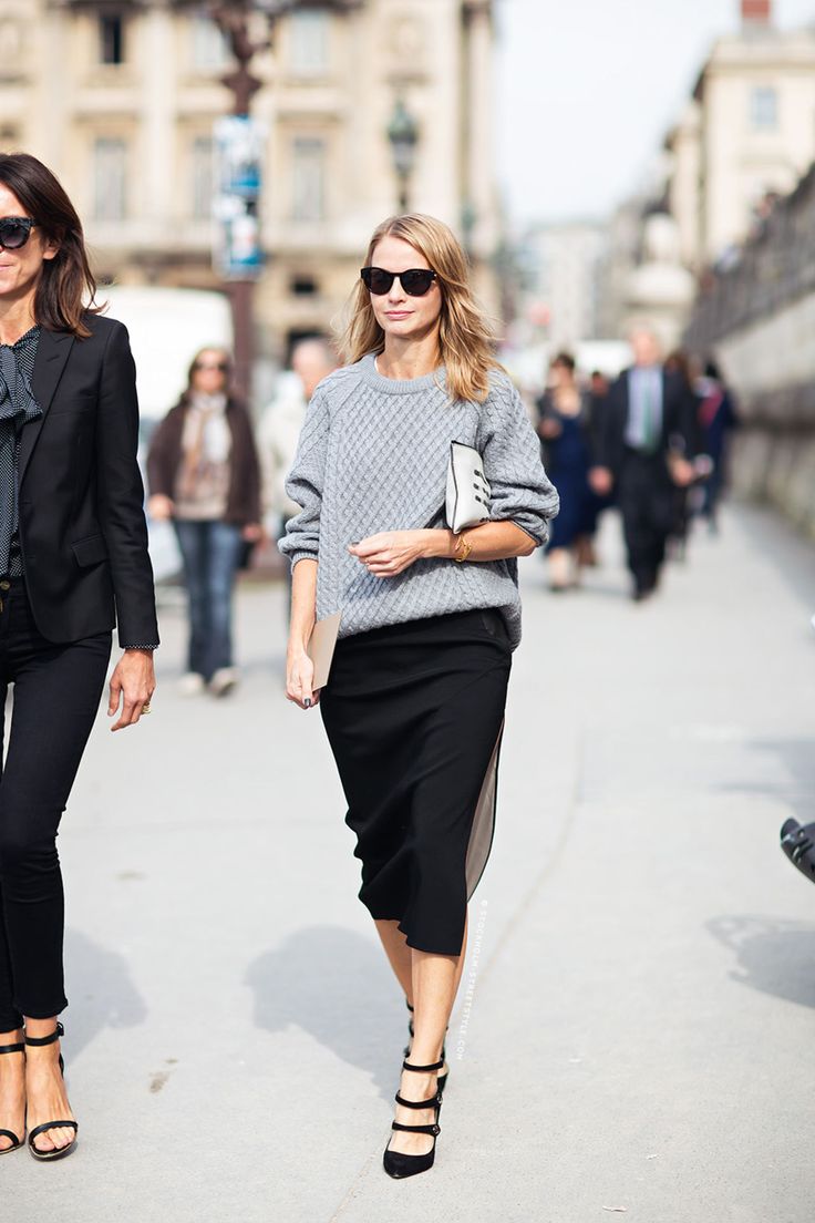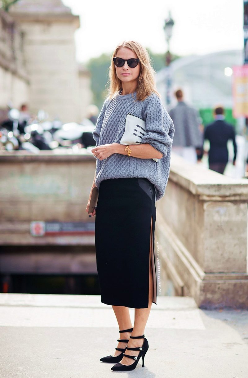 A medium-length pencil skirt is one of the basic things in a wardrobe, on the basis of which you can create many sets that are suitable for a variety of situations. Changing the top and accessories, we turn a strict skirt into a versatile piece of clothing.