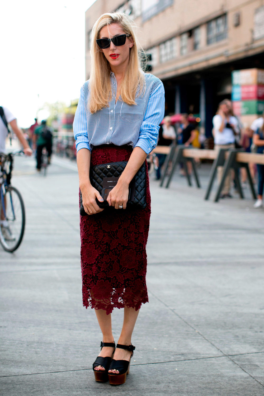 Do not be afraid that the midi pencil skirt draws attention to certain areas. Nevertheless, this piece of clothing belongs to the business style, so it is combined with discreet things - shirts, vests, blouses, turtlenecks. Properly selected top helps to create a harmonious image that combines severity and elegance with femininity and sexuality.
