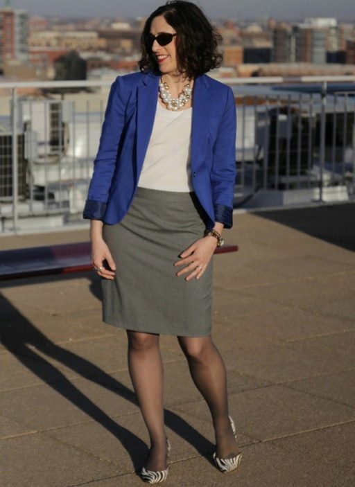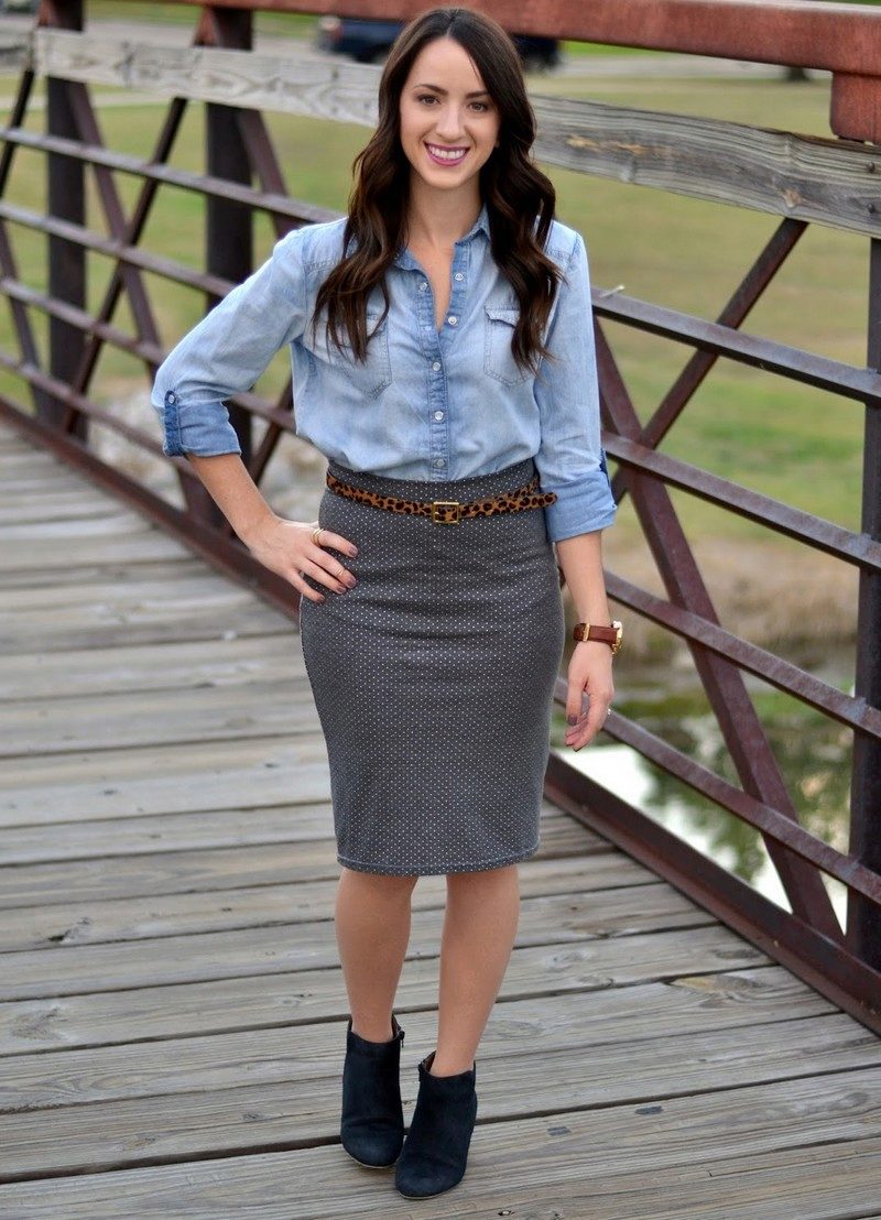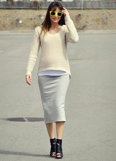 With a pencil skirt look great blouses, turtlenecks or blazers. For the bottom of the gray color is to choose fancy colors. A beautiful addition to the cold days will be a vest or a light cardigan.