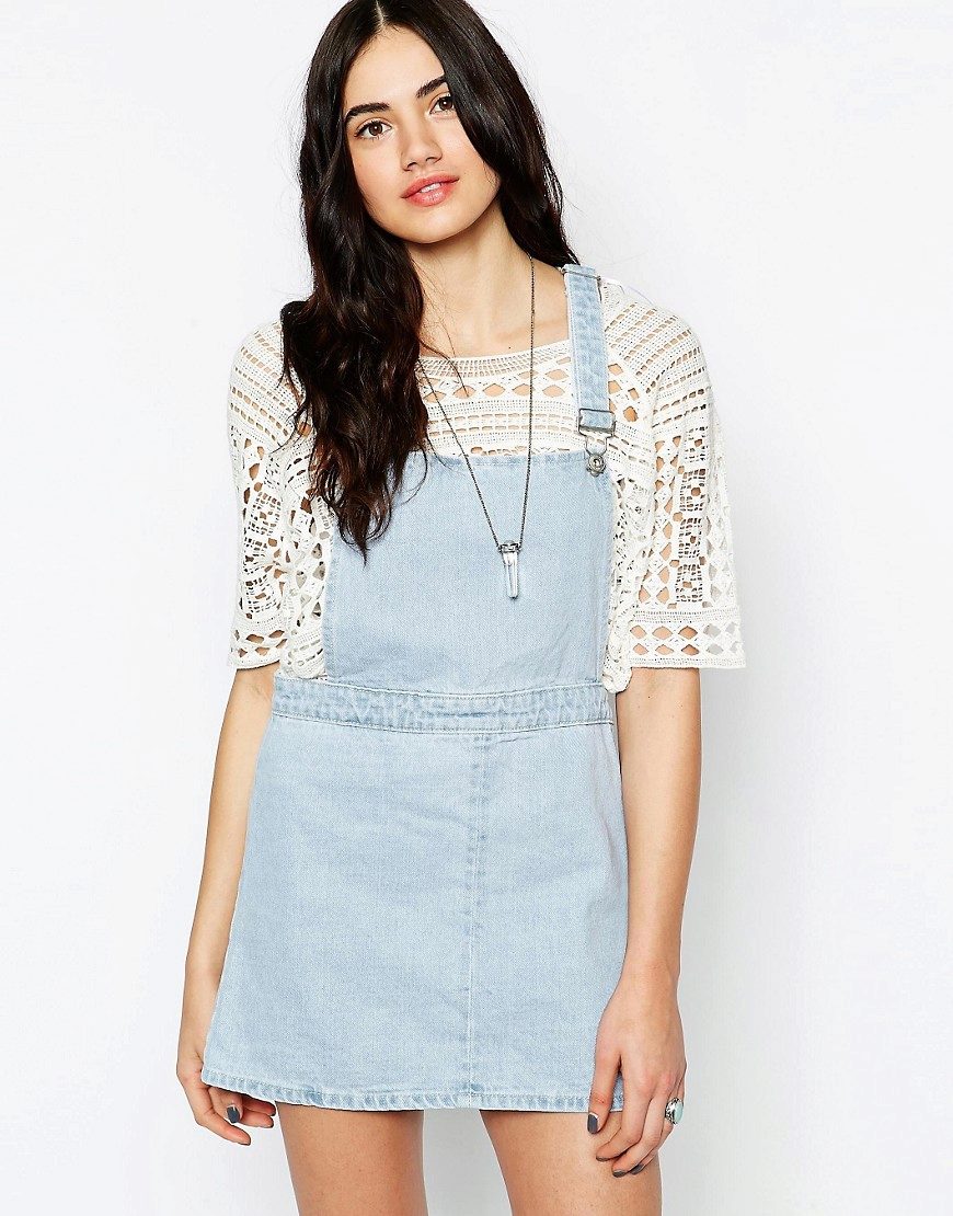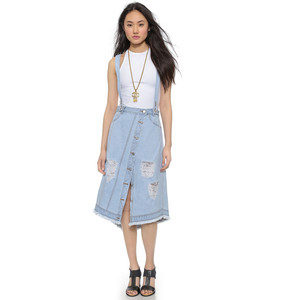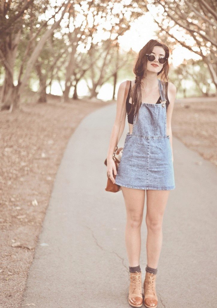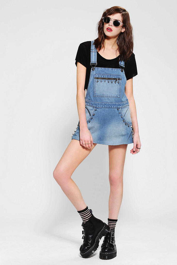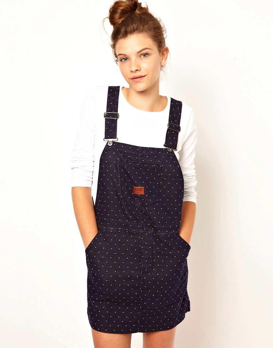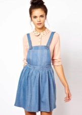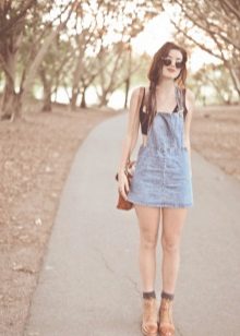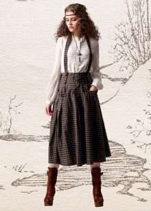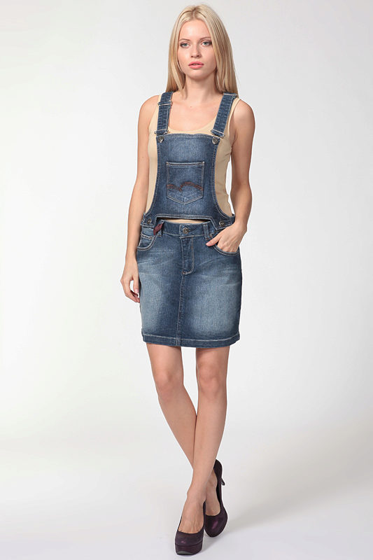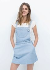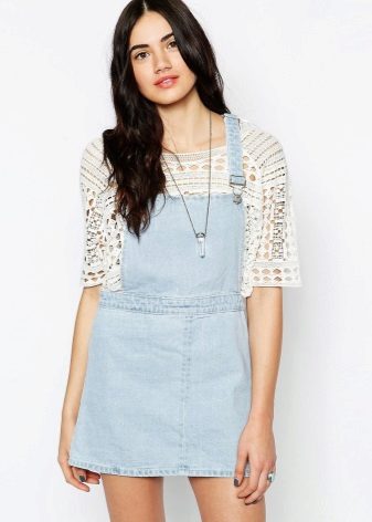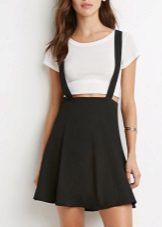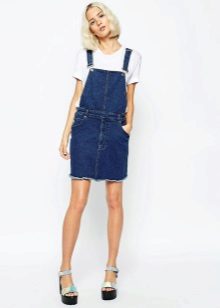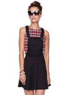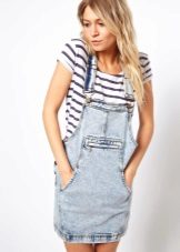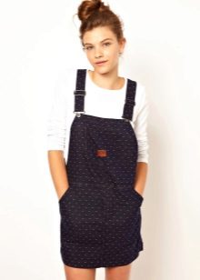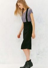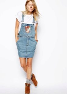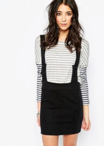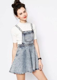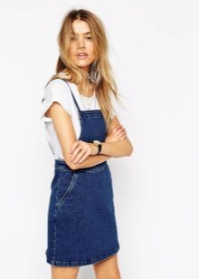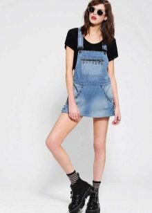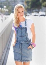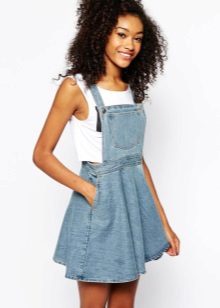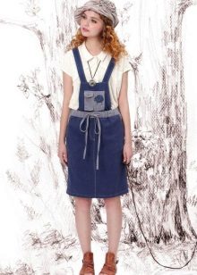 Among the models of female variants of overalls, quite often there are semi-overalls skirts. Unlike skirts-overalls, they do not have a closed top, that is, the straps in such clothes begin immediately from the skirt.