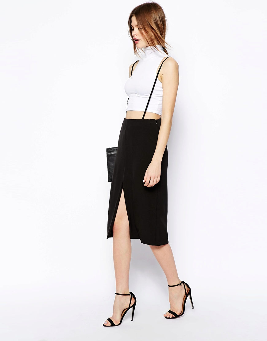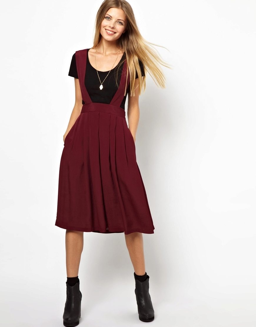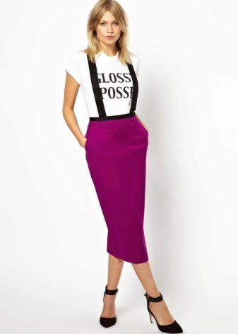The most common styles of these skirts with straps are “pencil”, “trapeze”, “sun”.
