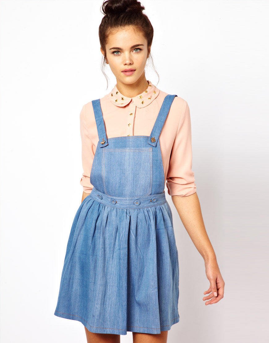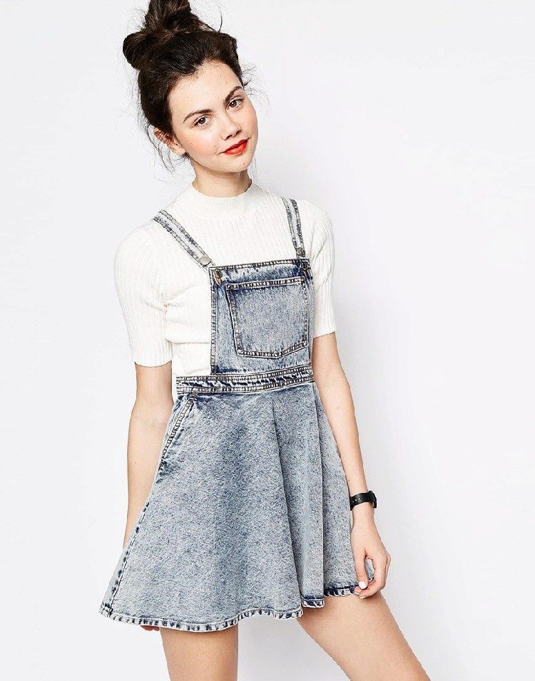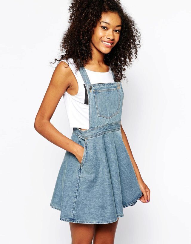 In addition to the fabric and colors of skirts-overalls, women of fashion can experiment with different lengths. Short skirts are chosen by girls with slender legs, and if you want to hide the flaws in their legs, it is better to prefer elongated models.