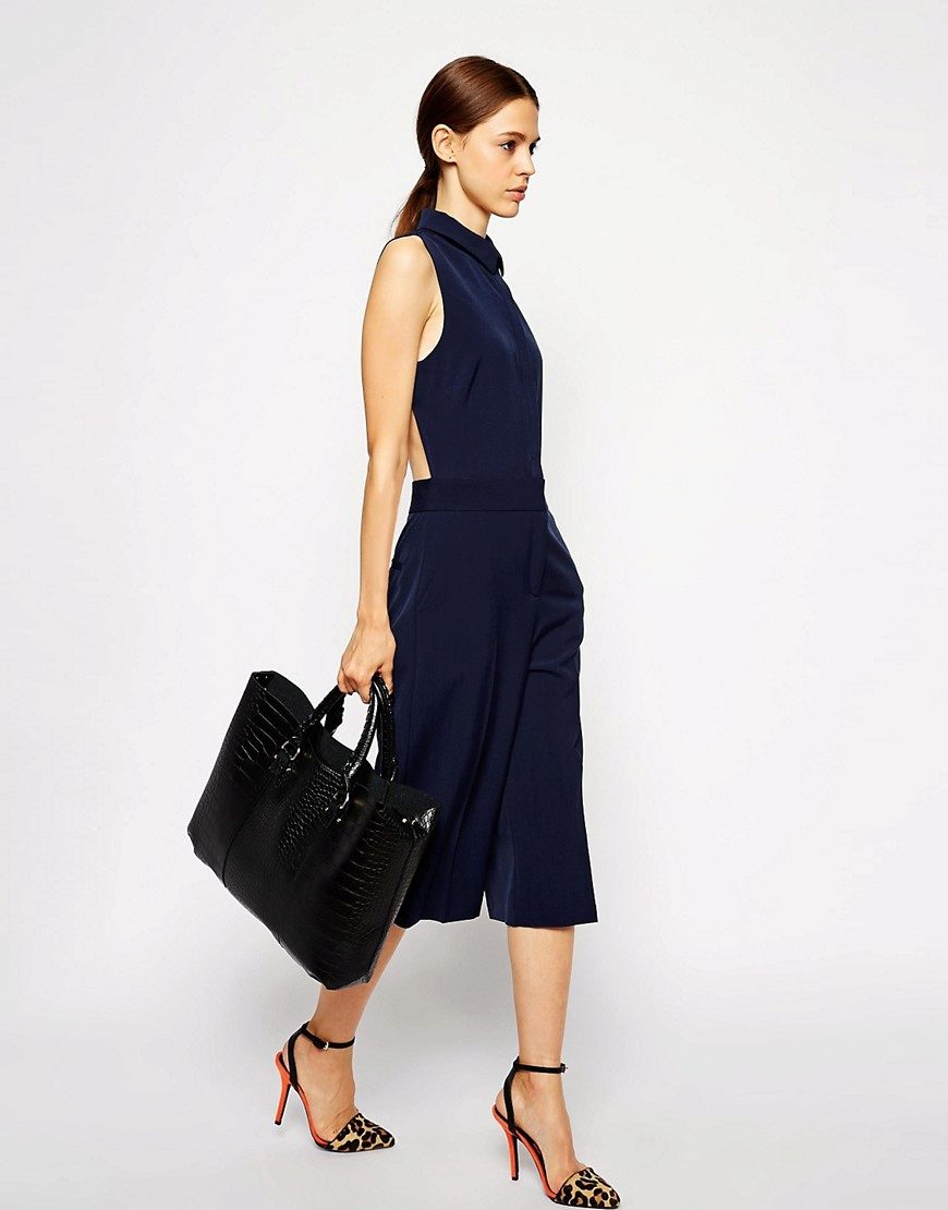 For the office, overalls and semi-overalls with a skirt made of dense costume fabric of strict cut are in demand.