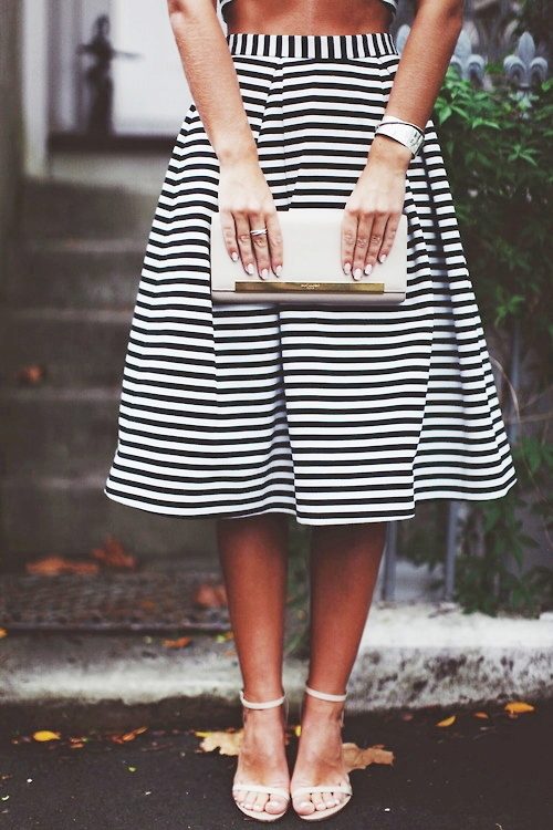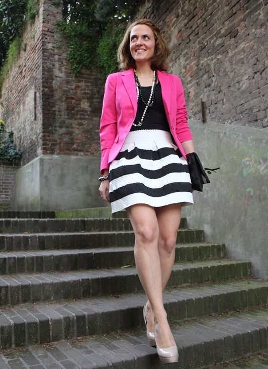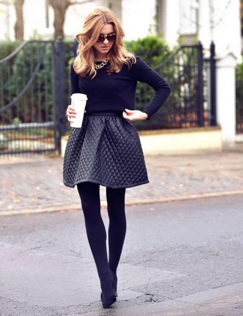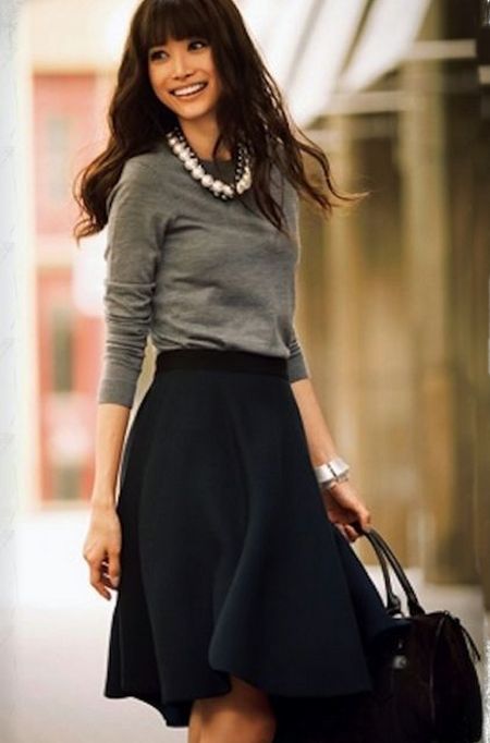 Textured skirt looks great with a restrained top. A lightweight blouse made of lightweight fabric with a short jacket will help create an amazing look. Emphasis should be placed on the skirt or blouse, so the silhouette will look stylish.