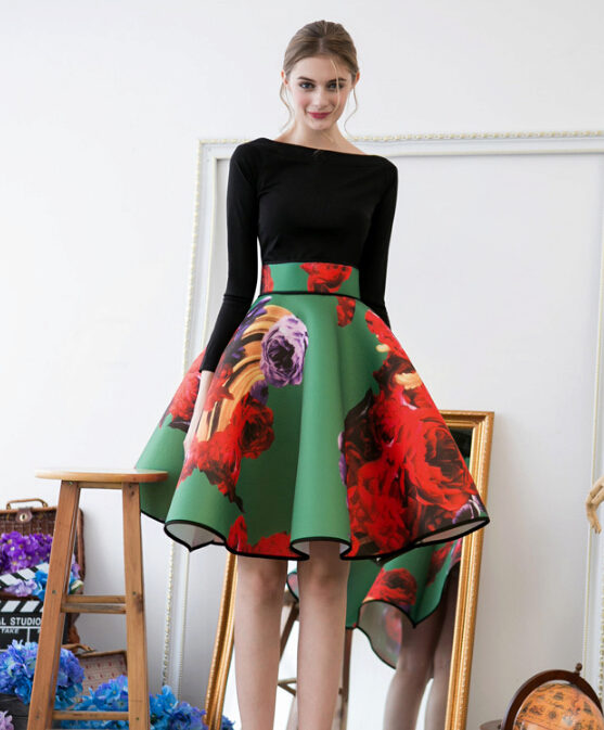 This season, designers offer skirts with floral prints, as well as models decorated with geometric shapes or large cells. The most popular colors are black or red, although you can choose your favorite shade.