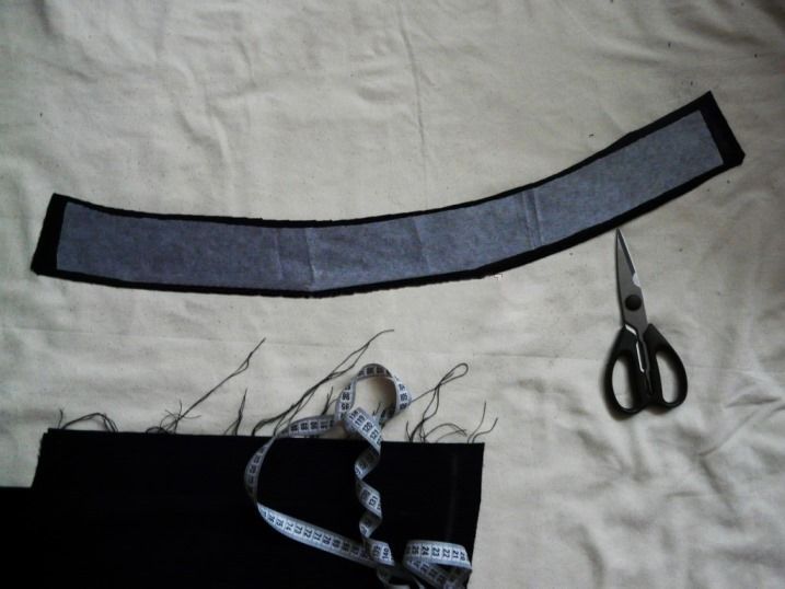 - First, glue the tape on two sides of the semicircle, which shows the waistline. Its size will be the size of the lightning + 2 centimeters.