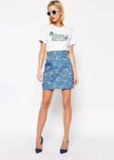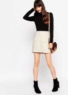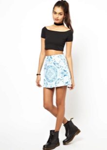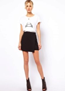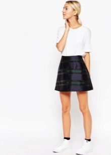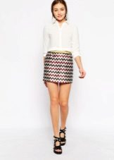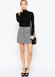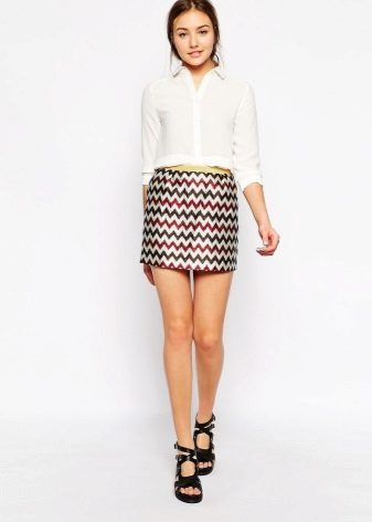 To date, the standard model of a mini-skirt is the model "pencil". Such skirts monophonic color look strictly and elegantly. You can diversify the style with the help of multi-colored prints and decorative elements in the form of asymmetric figures. The clasp can also serve as a peculiar decoration - buttons or a belt in a contrasting color will emphasize the sensuality and taste of the skirt holder.