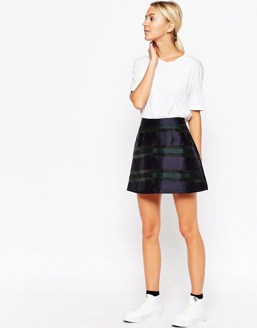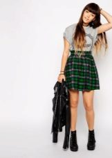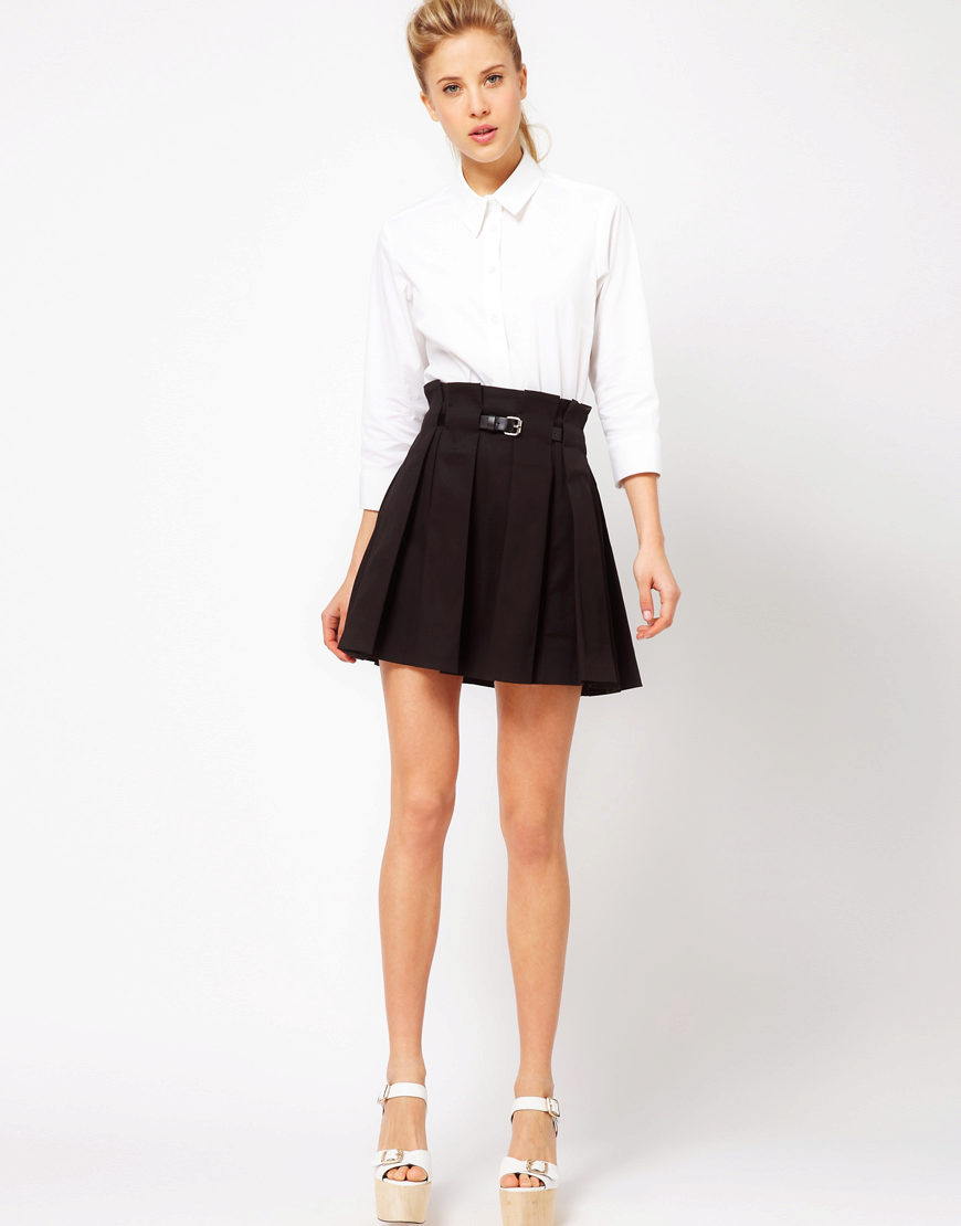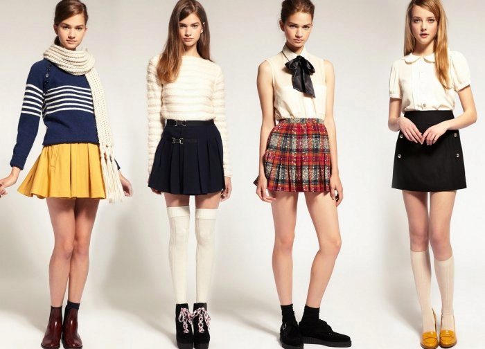 With a short skirt, almost all kinds of shoes look great. A low platform is suitable for walking, but still the ideal option is a flat sole: sandals, ballet flats or classic pumps. But about the shoes also do not forget.