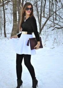 Due to its color, a black micro-skirt is a dress that can be put on even in an office, having correctly selected the remaining items of clothing. If, say, to wear a white strict blouse and black leggings, then the office dress code “white top-black bottom” is completely fulfilled. In this case, it is useful to throw on top a cardigan or an elongated jacket to match. Various accessories will help complete the business image, such as watches.