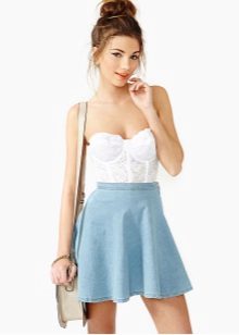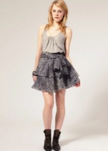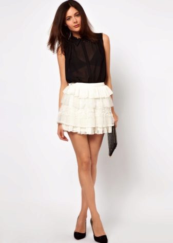 Flared mini skirts with curly front folds you into a mischievous schoolgirl. Such models "a la Tattoo" today are very popular among fashionistas due to the presence of the Basque - wide frill, which is sewn on the same level with the waist. Wearing such skirts is better in calm weather, and just in case, wear opaque underwear.
