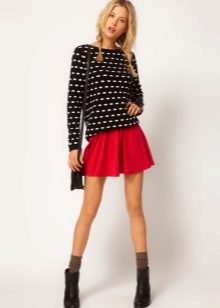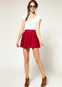 Pleated miniskirts are also a very popular model. They give the figure a special grace and lightness. But it should be noted that only very slim girls can wear such skirts - visually they add volume, which should not apparently turn you into crumbs. Wearing such skirts is appropriate with a blouse or top. The color should be chosen according to this principle: if the top is bright, then the skirt will be pastel delicate shades, and vice versa - the colorful and colorful bottom makes it necessary to wear a blouse of restrained tones.