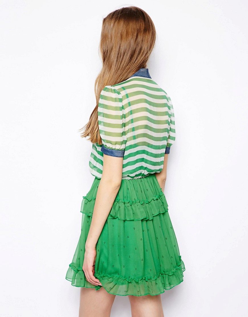 Tiered skirts can be suitable for those who need to visually enlarge the hips. It is important to choose the right colors. For example, the alternation of bright blue and white tiers will pay close attention to themselves, and static stripes will balance your silhouette.