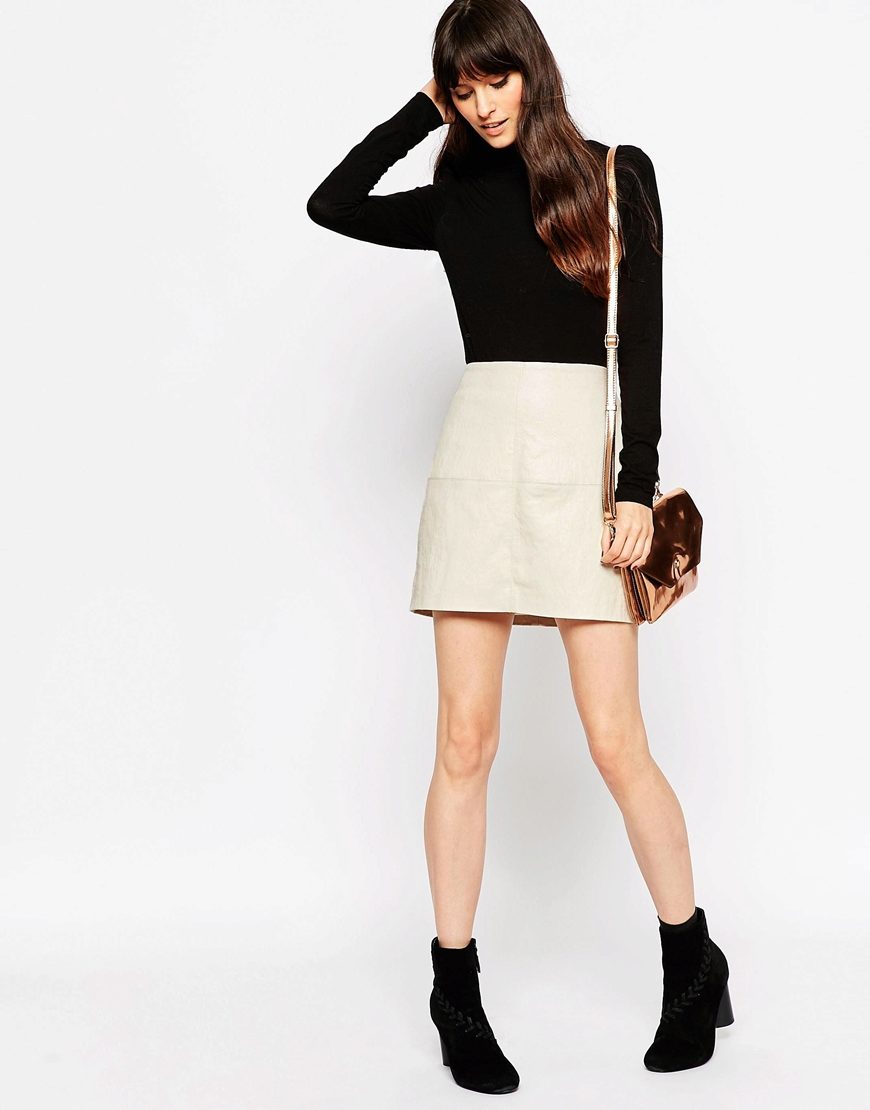 Owners of a slender body are simply obliged to wear mini-skirts, they are naturally given the gift to please the eyes of the surrounding men. But in order not to look vulgar and stupid, you need to choose the right one. With such a skirt, you do not need to wear a deep cleavage, so as not to demonstrate all the charms at once. The mini looks good with a button-down blouse, turtleneck, light tops with a simple cut, as well as shirts.