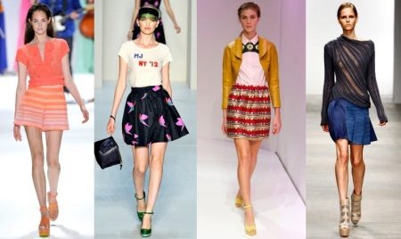 To date, a mini skirt length is in the wardrobe of every fashionista. It is impossible to imagine a single fashion show without a demonstration of models of skirts above the knees, the various variations of which are full of bright colors and a variety of cut.