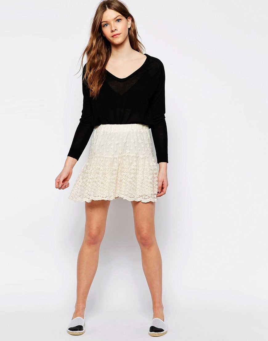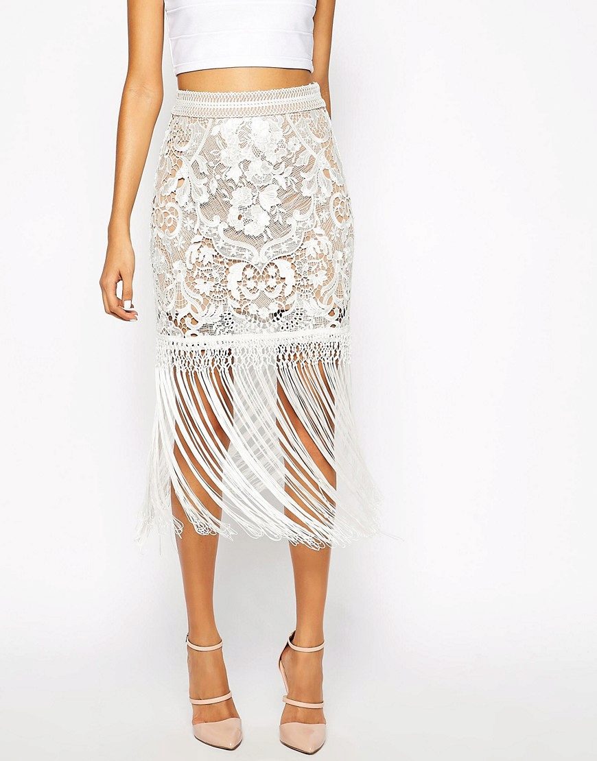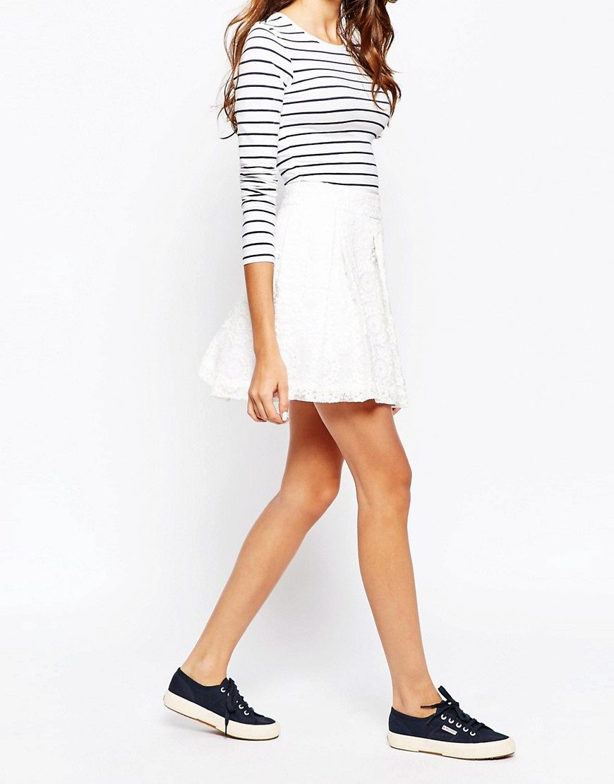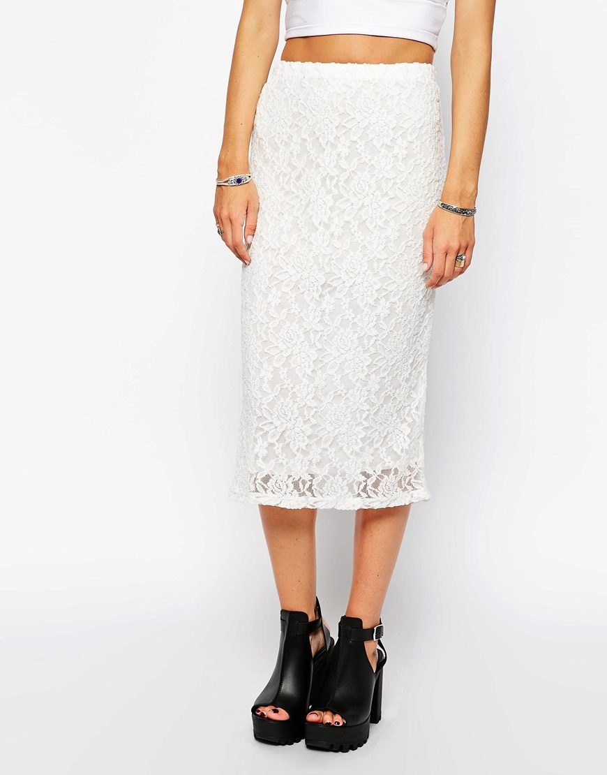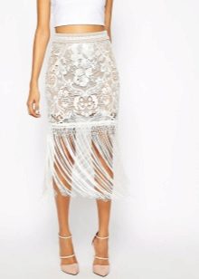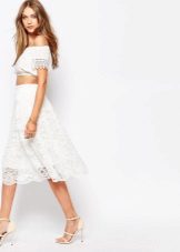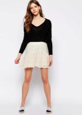 White lace skirts also belong to things that are universally compatible with other items of clothing. The white skirt itself looks very elegant, to create a spectacular image of a fairly well-chosen top. Satin, chiffon, silk or guipure blouse will help to create a very delicate, feminine bow.