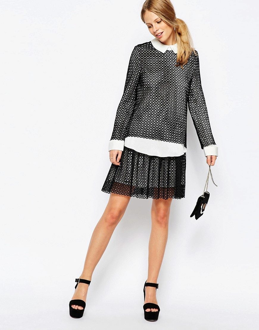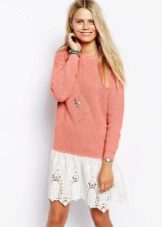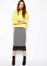 Perfect for cool weather. A lace pencil skirt will look great with a voluminous jumper, turtleneck or sweater. Layering is now in fashion, so you can safely experiment with the image and wear a shirt under a jumper, for example.