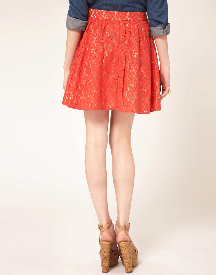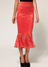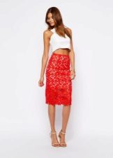 A red lace skirt in combination with a classic top, jacket and high-heeled shoes will help create or strengthen the image of a successful business woman. Such a skirt will not tolerate mixing with colorful or vague things. Only a classic, it is always a win-win.