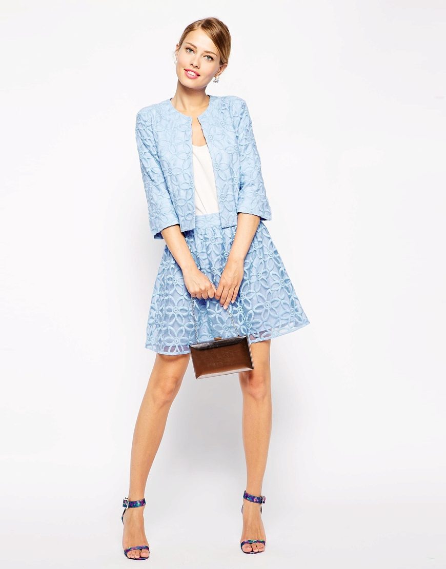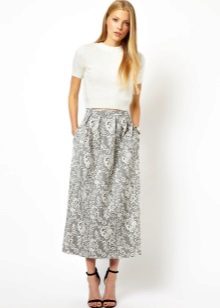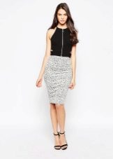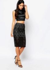 Top and skirt, made of the same material, perfectly complement each other. If you pick the top of the same shade as the skirt, then together they will look like an elegant, evening dress. It is undesirable to pick a top of a darker shade than the skirt itself. A fitted jacket will help to complement the created image.