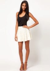 - Short and flared skirts are well combined with tight tops or T-shirts.