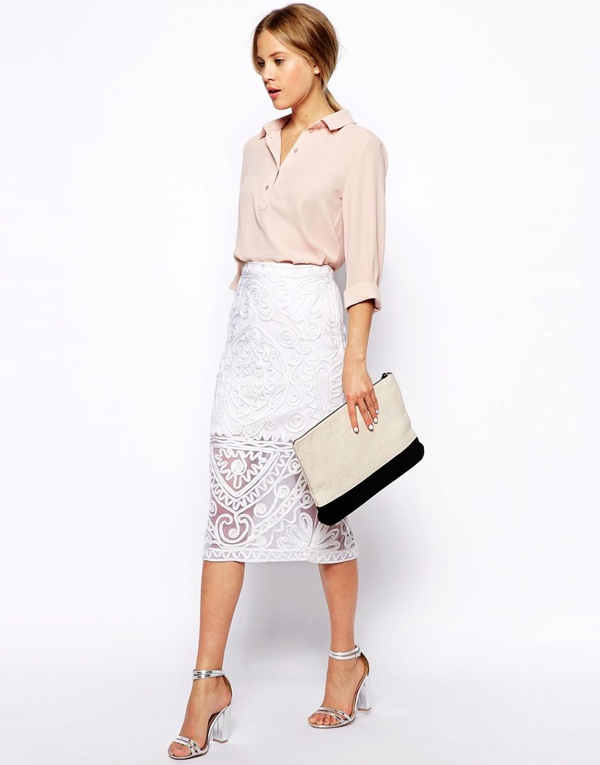 A lace pencil skirt is the optimal solution for a business lady who wants to add a touch of femininity and romance to the strict, official style.