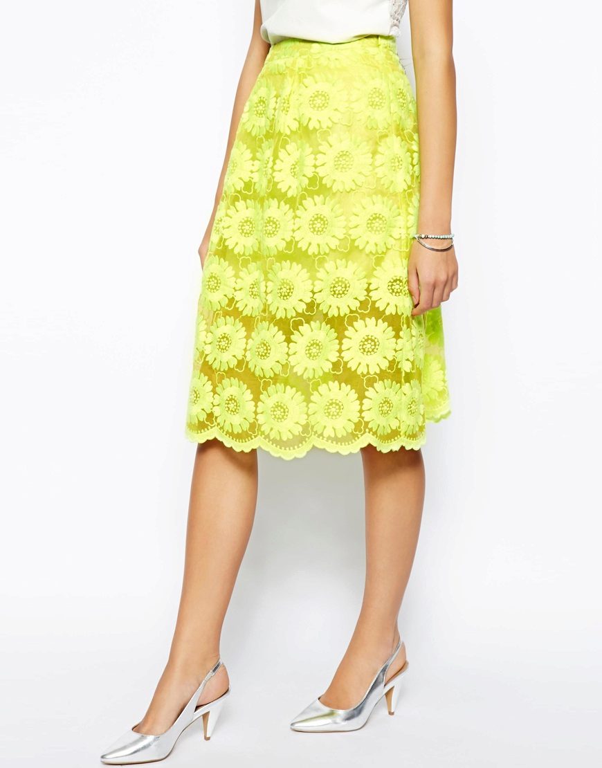 - Lace skirt rich, bright color requires a calmer, neutral top.