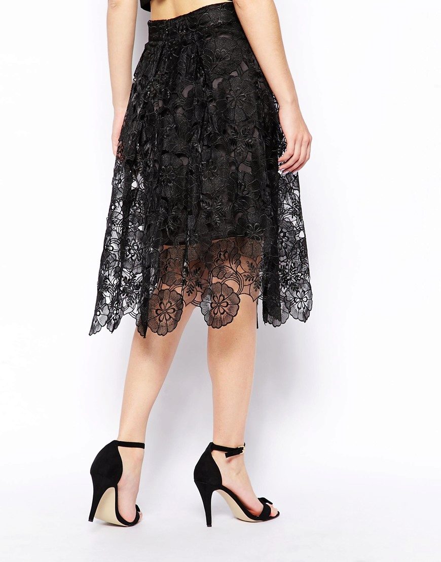 Black is a classic, base color. It is universally combined with other colors and looks great in the solo version. Used in different styles of clothing. Lace black skirt to the floor - perfect for publication. A short lace skirt in black is suitable for everyday wardrobe. A medium-length skirt in combination with a classic blouse or a sleek top creates a strict business look. It can be supplemented with a fitted jacket.