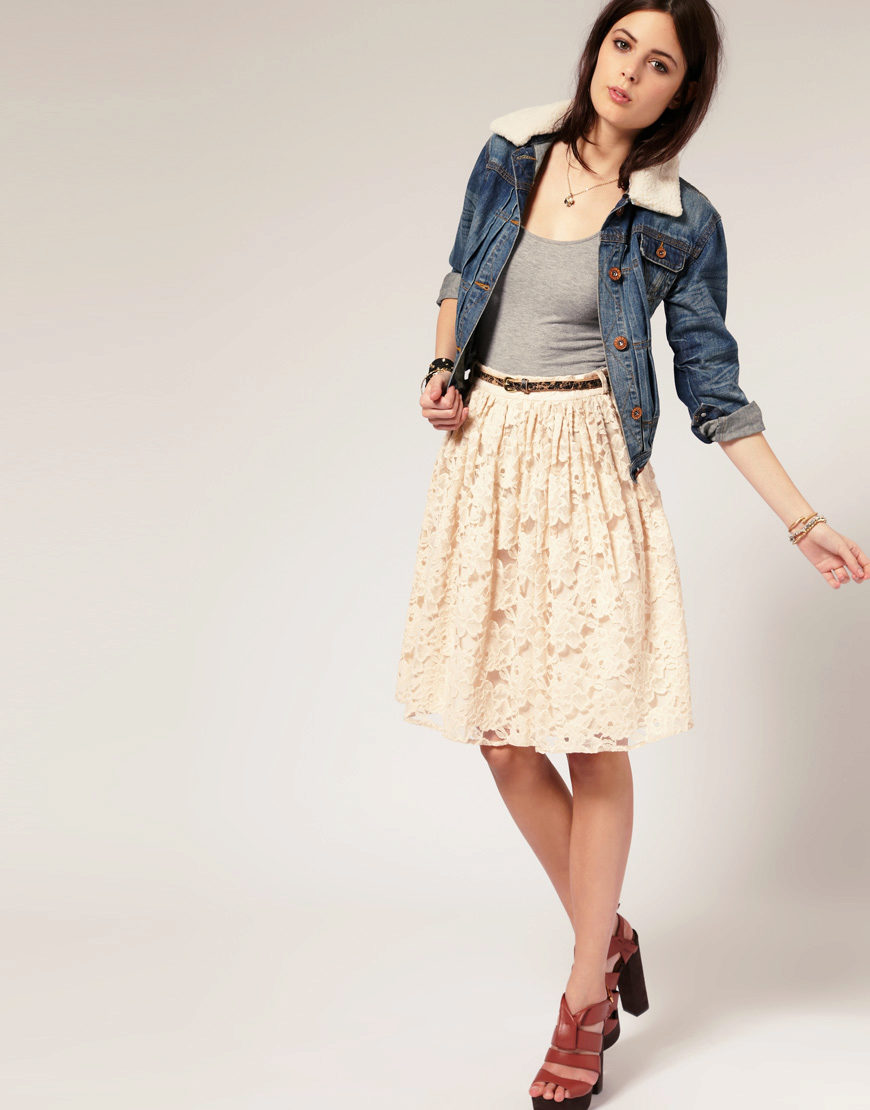 Lace was originally used to create a romantic style of dress. Light, lace fabric, could not be better suited to the image of a young dreamy young lady. Today's fashion trends dictate new rules. A lace sun skirt goes well with a simple sleeved top and a denim shirt. This image looks very modern, democratic and no less elegant than the romantic!