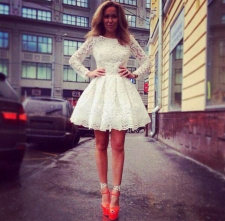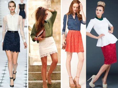 Women with perfect figures or similar parameters can safely choose a short lace skirt of any style. It is desirable to combine a miniskirt with more modest, closed top that the image looked more harmoniously.
