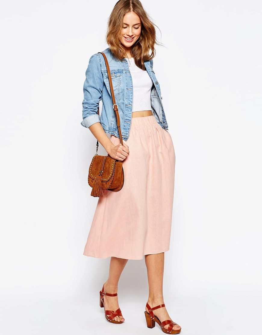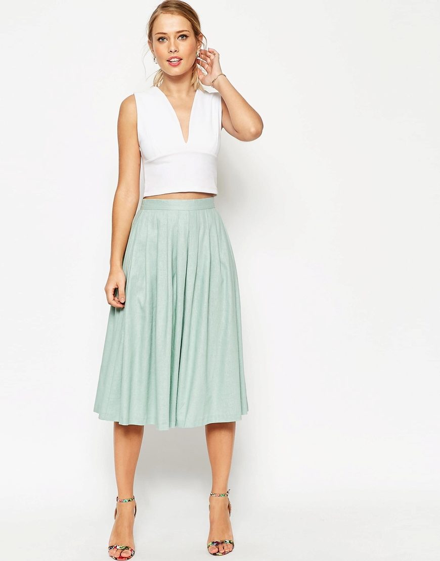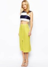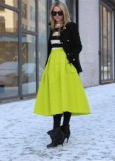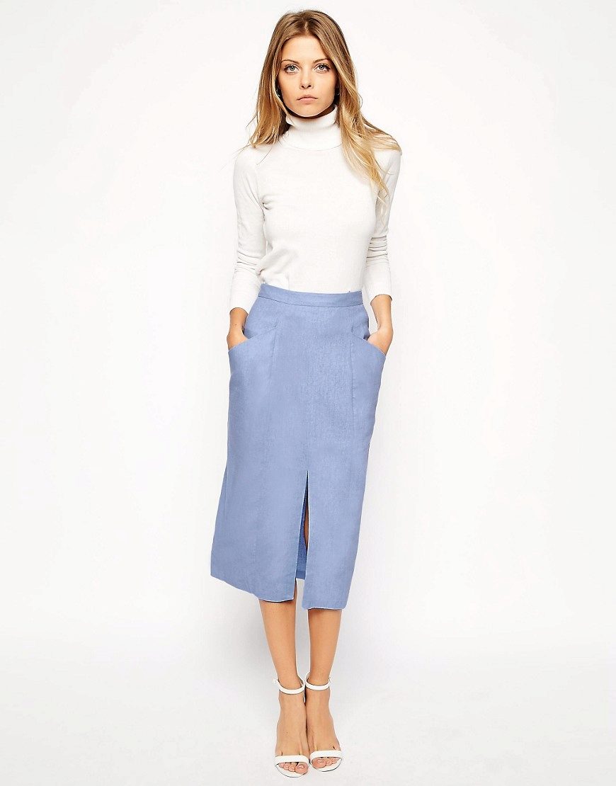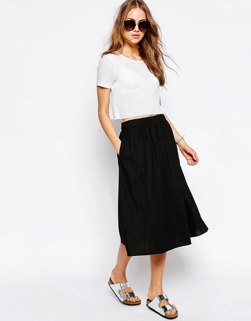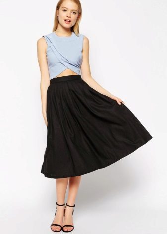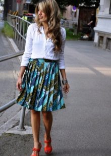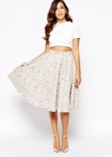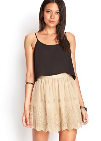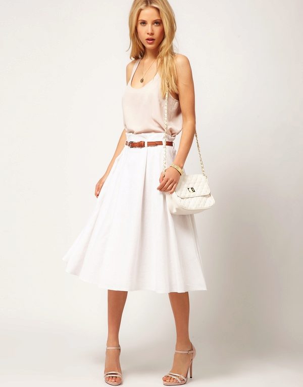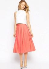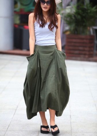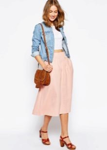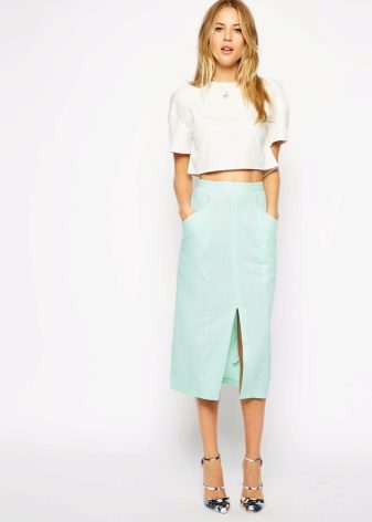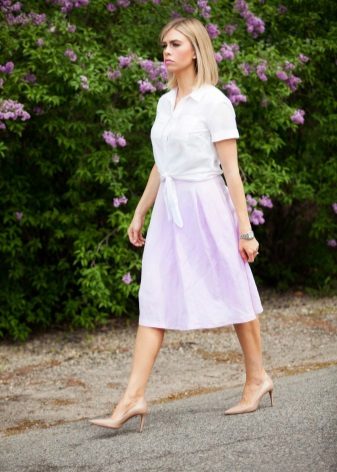Skirts of this length are usually chosen by girls who are forced to observe a strict dress code in the heat of summer. And because it is often the product of direct cut low-key colors. Flared casual linen skirts are also presented in midi length. They are distinguished by a bright tone of fabric or an interesting print.