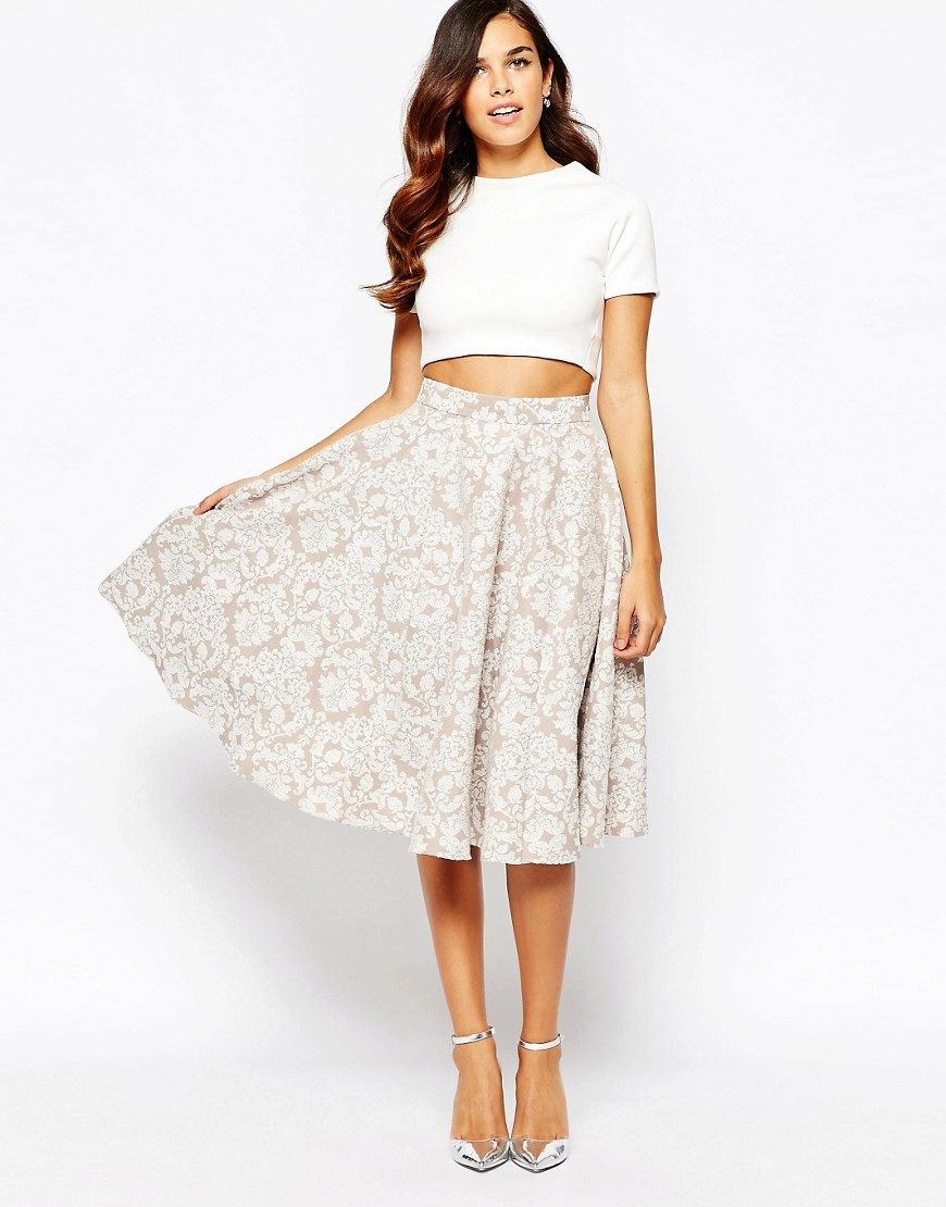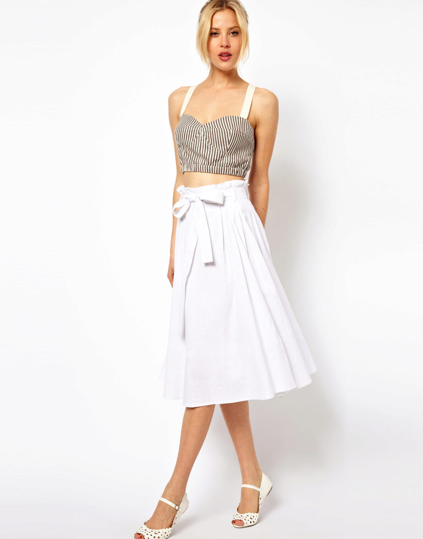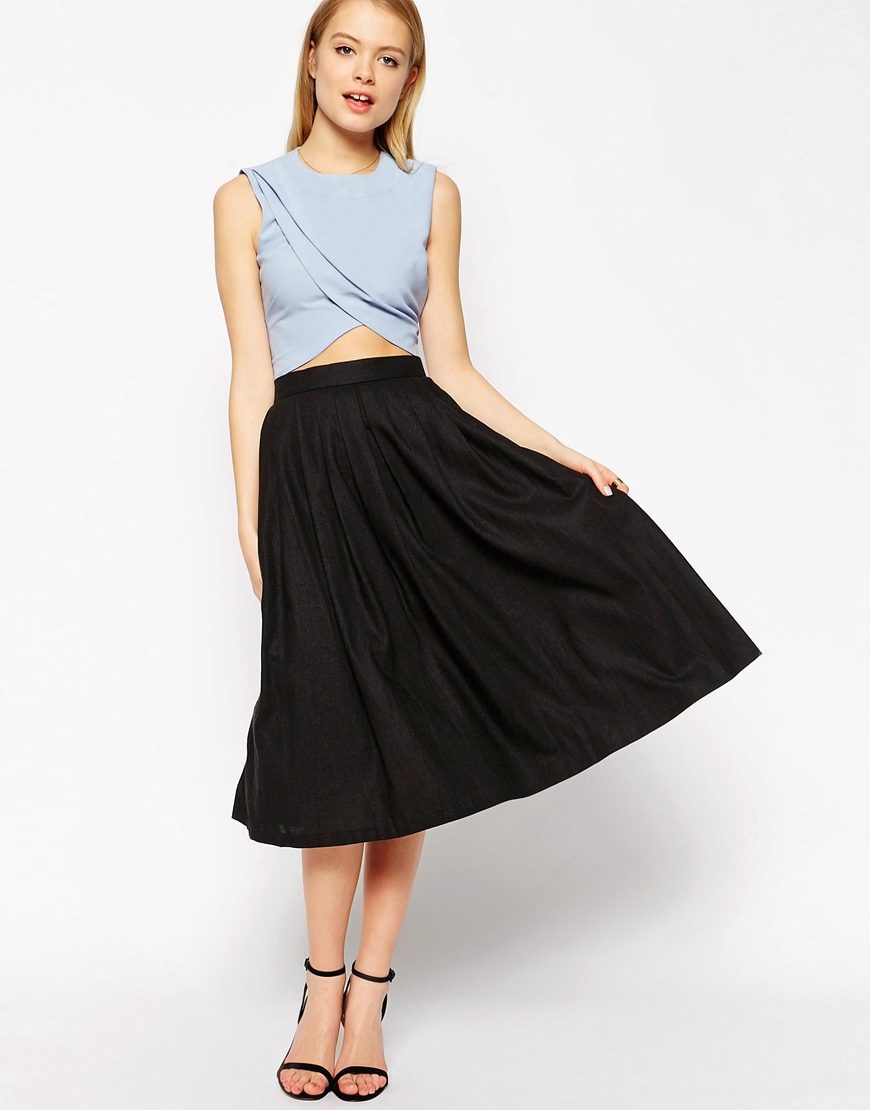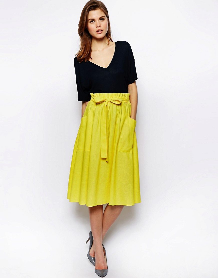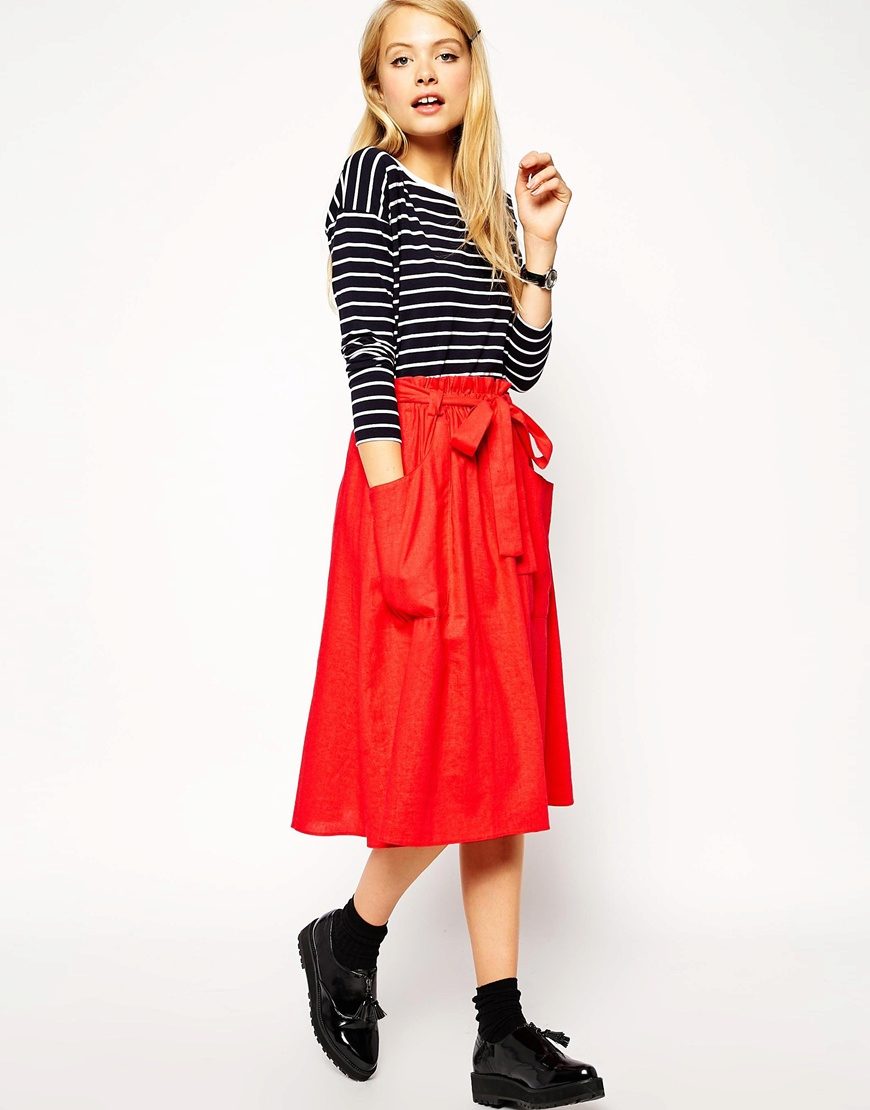 Skirts of this length are usually chosen by girls who are forced to observe a strict dress code in the heat of summer. And because it is often the product of direct cut low-key colors. Flared casual linen skirts are also presented in midi length. They are distinguished by a bright tone of fabric or an interesting print.