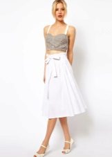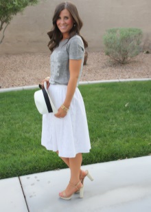 An excellent option for shoes to a linen skirt is considered to be sandals and sandals on a low speed or wedge heel. Also to the ensemble with a skirt you can pick up ballet flats, textile shoes or lightweight shoes. If you want shoes with a heel, then in combination with linen skirts, low and stable heels are preferable.