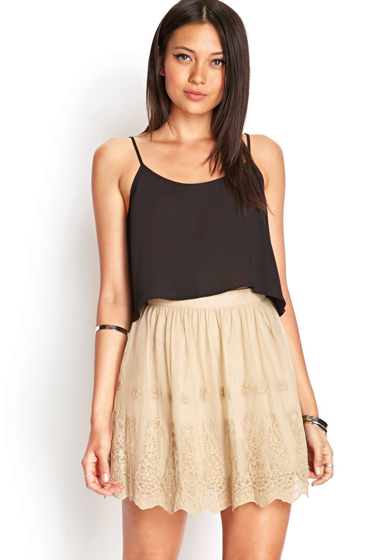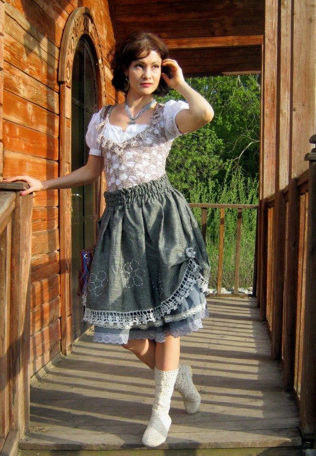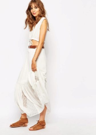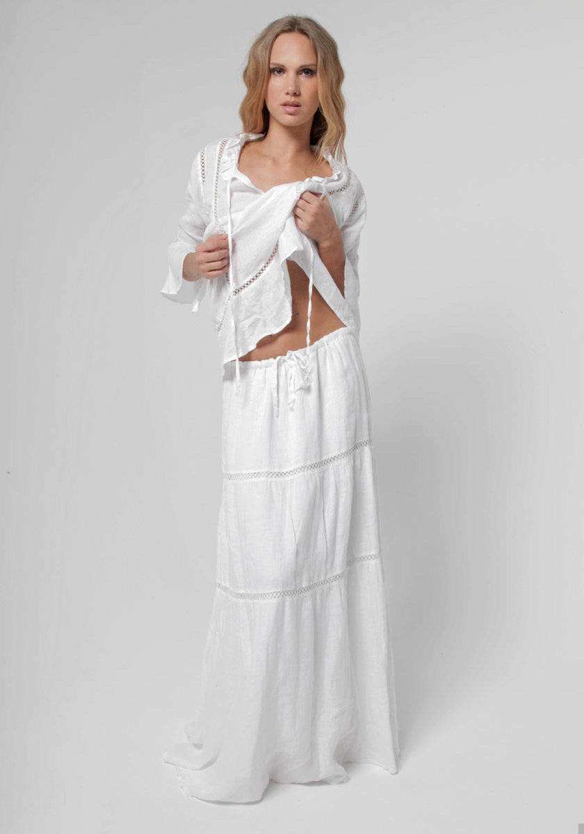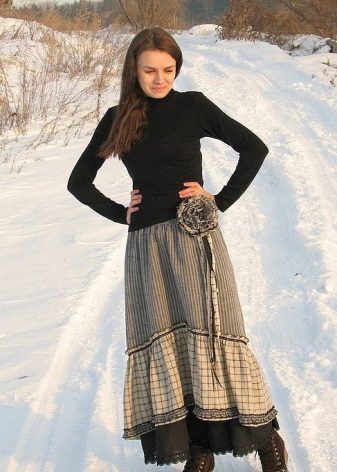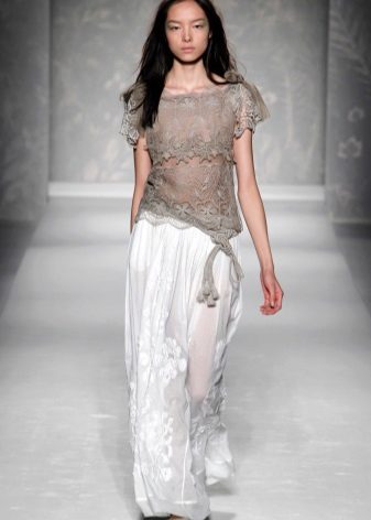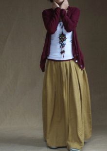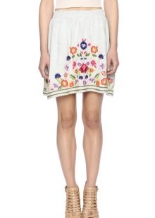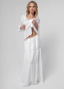 Such flaxen skirts look original and stylish. They are decorated with ruffles, embroidery, lace and ruffles, often sewn multi-layered, so they look delicate and airy. Their colors are often natural, and the length is represented mainly by maxi models.