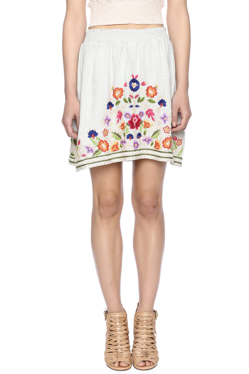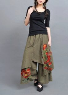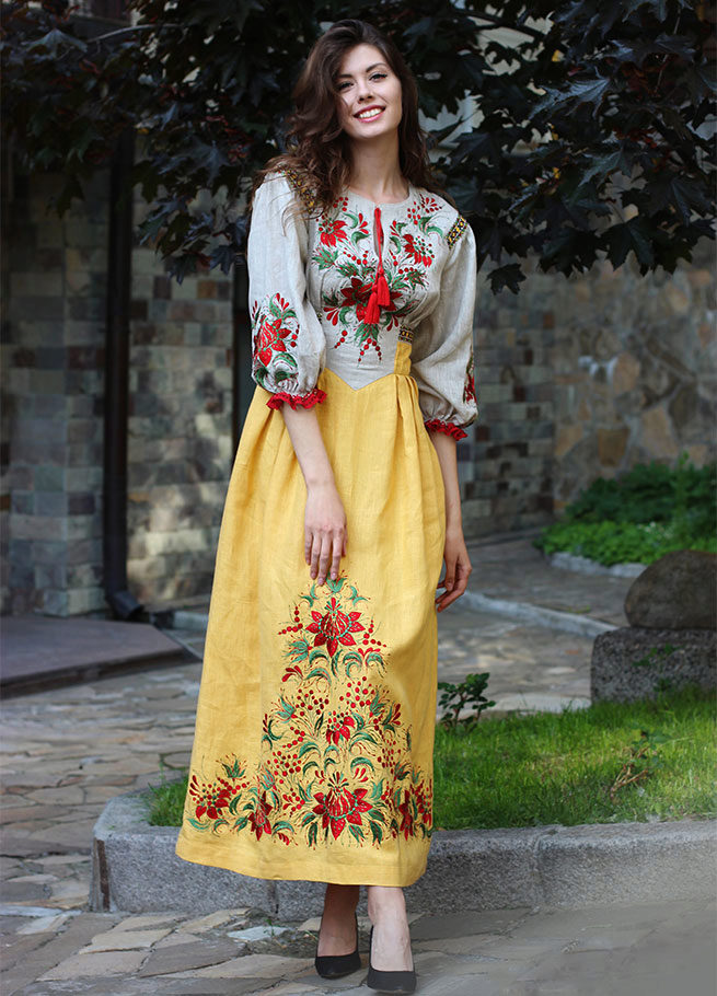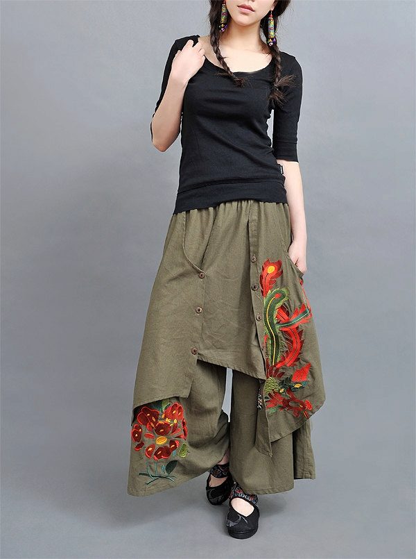 Most often, embroidery trim hem linen skirt, but it may be present in the waist, decorating pockets and belt.